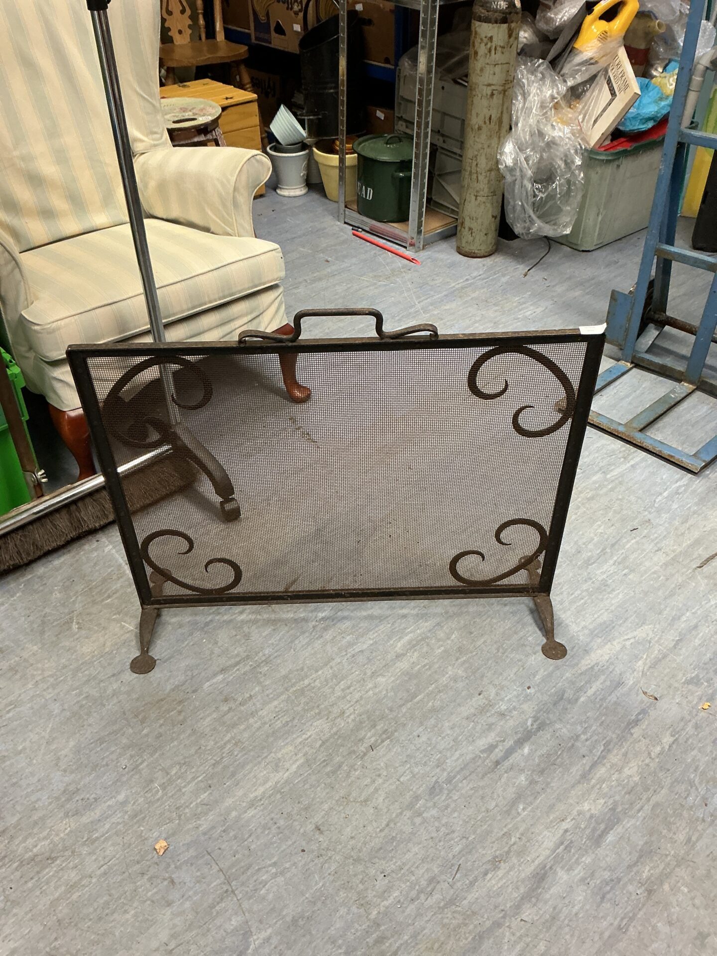 The fire guard shows signs of age and use, with some surface wear and possible patina consistent with its vintage. It appears structurally sound, though a thorough inspection would be recommended before use. This piece would appeal to collectors of antique fireplace accessories or those seeking to add a touch of vintage charm to their home decor.