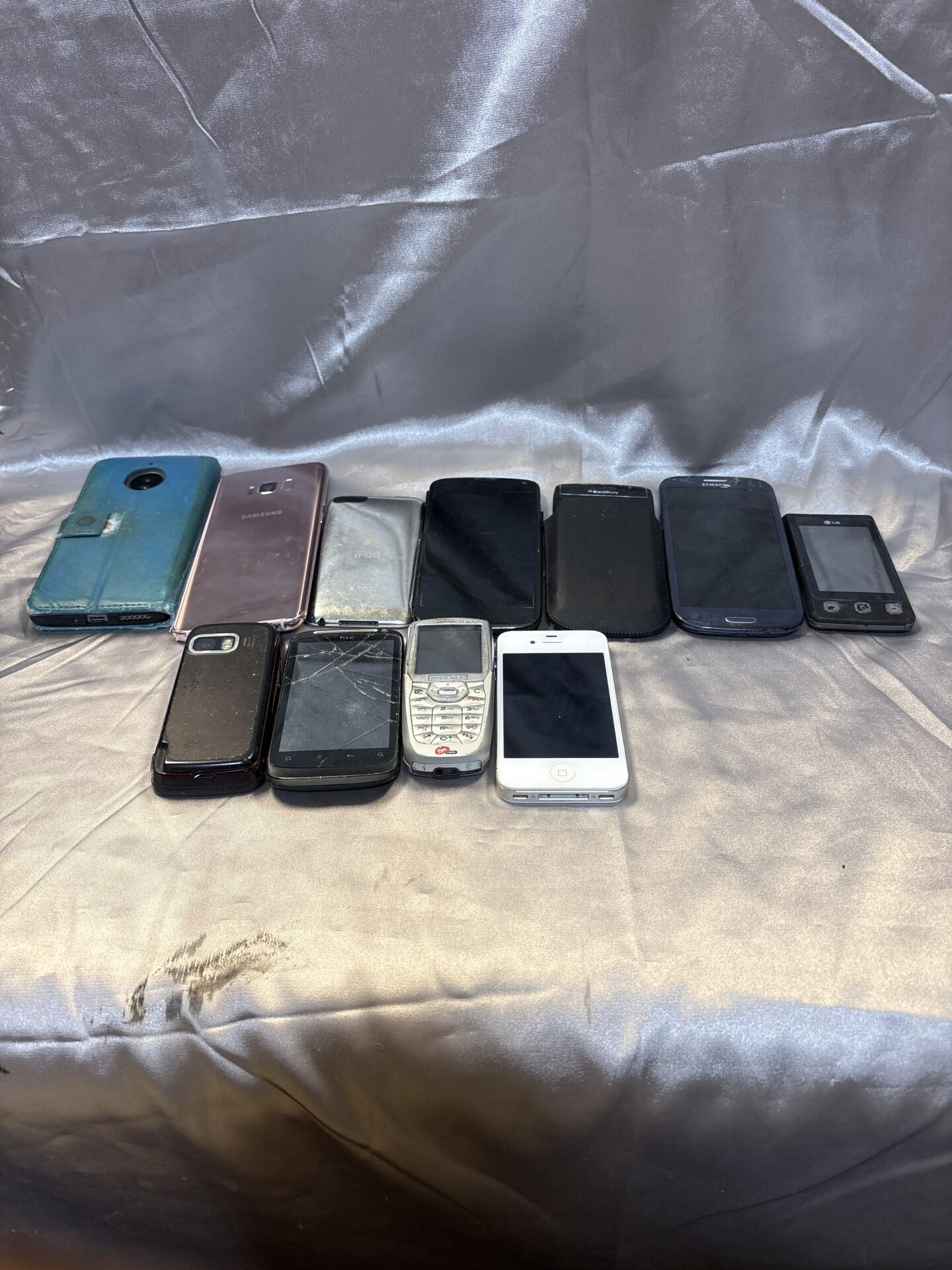This lot comprises a selection of vintage mobile phones, including an Apple iPod. The phones represent a range of styles and eras, showcasing the evolution of mobile technology. The collection includes various brands and designs, offering a glimpse into the history of personal communication.