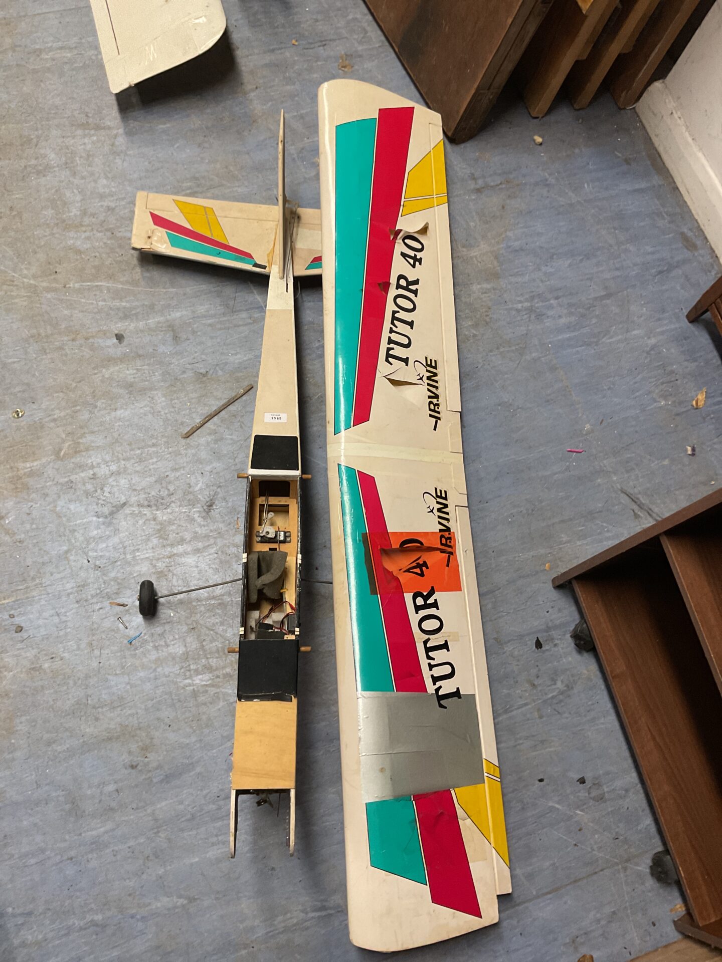 This Tutor 40 model airplane is presented for restoration. It shows signs of age and wear, with some damage and missing components. Despite its condition, it presents a fantastic opportunity for a collector or hobbyist to restore a piece of aviation history. The model’s vintage appeal and potential for restoration make it a desirable item for those interested in classic model aircraft.