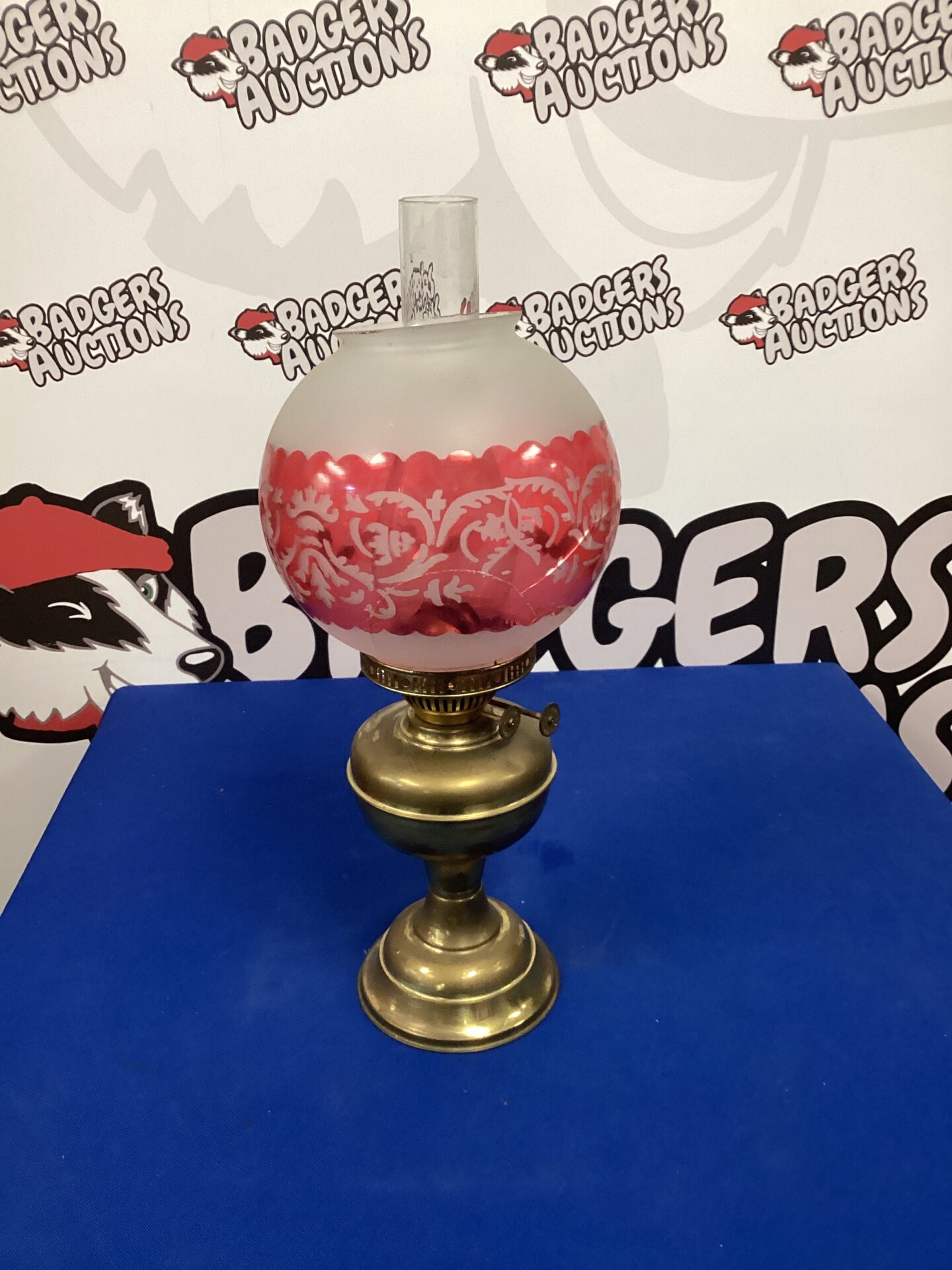 771 Vintage Parafin Oil Lamp With Glass Shade