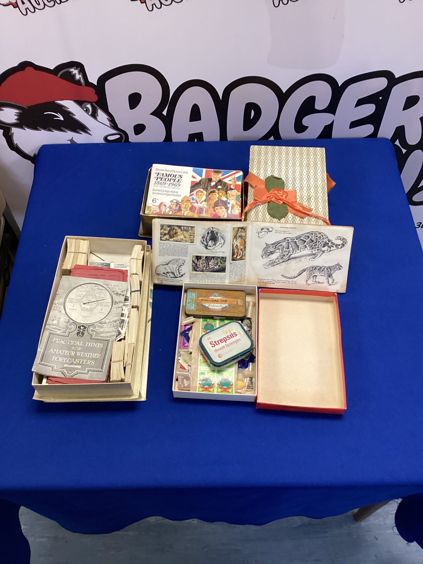 This lot comprises three boxes filled with a diverse assortment of vintage picture cards. The collection appears to span several decades, offering a glimpse into historical imagery and artistic styles. These cards represent a charming piece of ephemera, ideal for collectors or those interested in visual history.