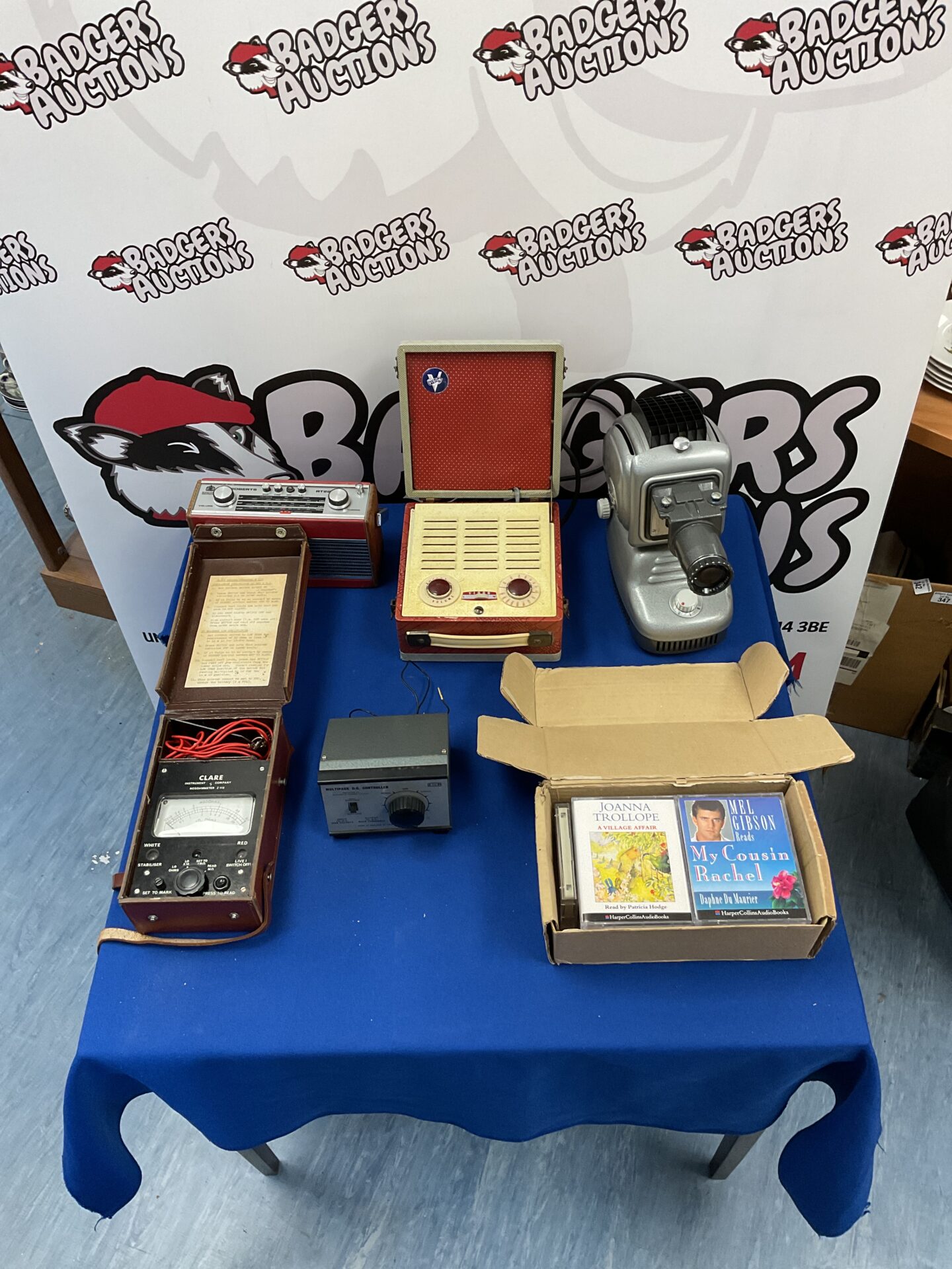 The radios and projector appear to be in used condition, with signs of wear consistent with their age. While a full functional test has not been performed, they present well and would be a fantastic addition to any collection of vintage electronics. The Noris Trumpf 150 projector is particularly sought after by collectors, and this lot offers a unique opportunity to acquire a piece of broadcasting and projection history.