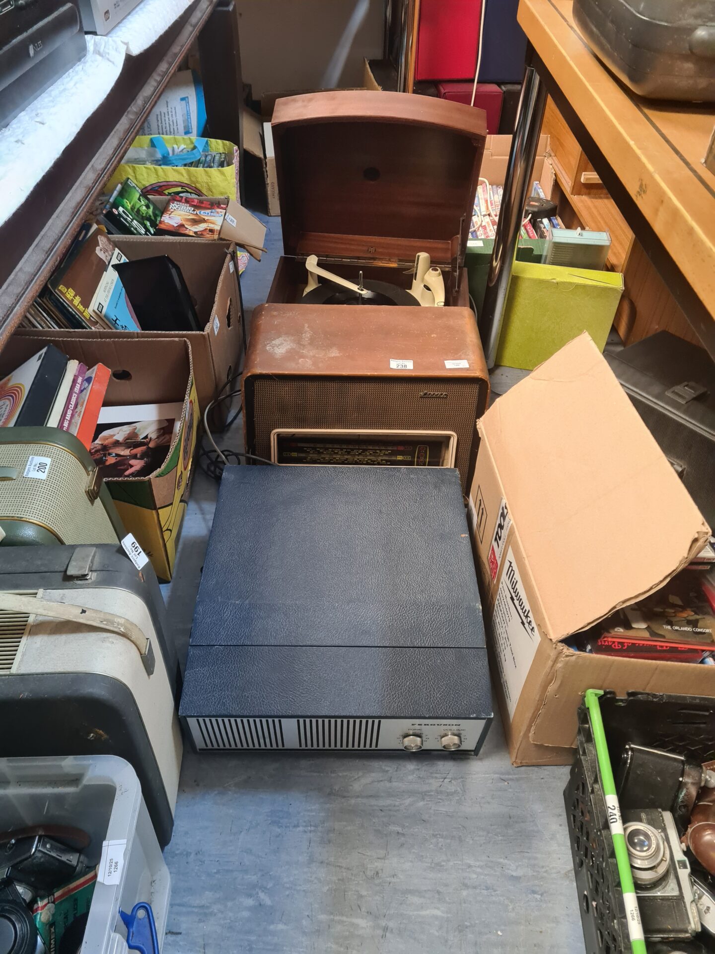 This lot features a collection of vintage audio equipment, including a Sobell radio and a Ferguson record player. These pieces represent a classic era of hifi technology, offering a nostalgic aesthetic and a warm, analogue sound. The record player is designed for vinyl enthusiasts, while the radio provides access to classic broadcasts and a timeless listening experience.