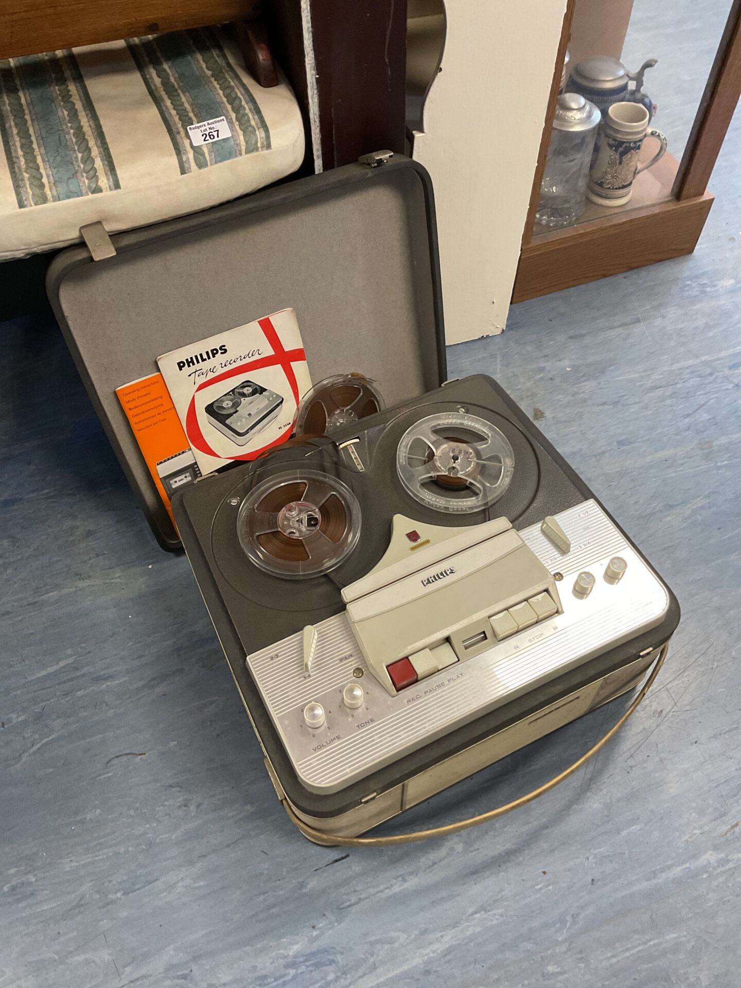This is a vintage Philips reel to reel tape recorder, a classic piece of analog audio equipment. The recorder features a sturdy construction and a sleek, mid-century modern aesthetic. It’s designed for recording and playing back audio on standard reel-to-reel tapes, offering a warm and authentic listening experience that many audiophiles seek.