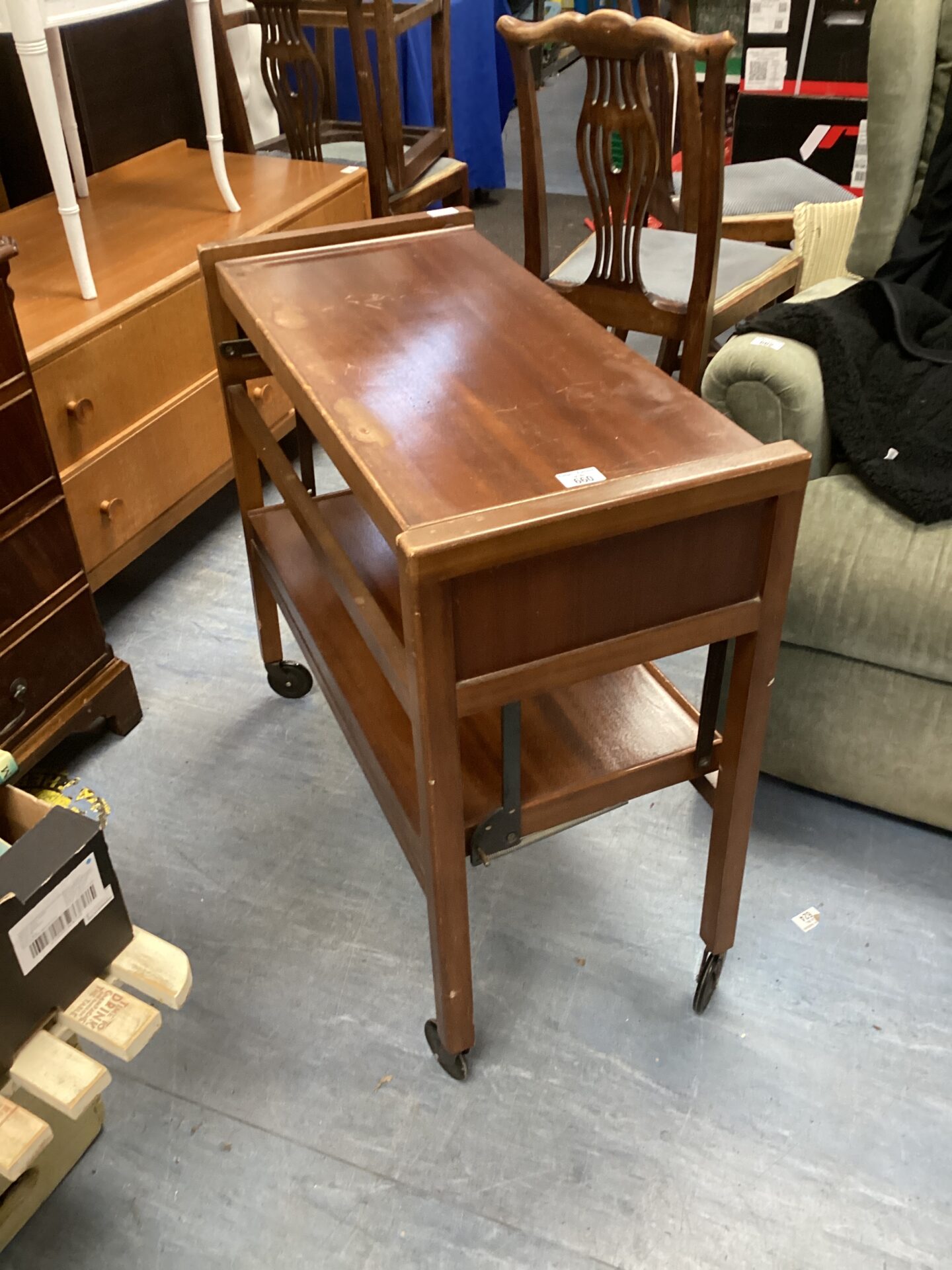 The trolley is in good vintage condition, exhibiting the expected signs of wear and patina consistent with its age. While there may be minor imperfections, these contribute to its character and authenticity. This trolley would appeal to collectors of vintage furniture or those seeking a unique and functional piece to enhance their home decor.