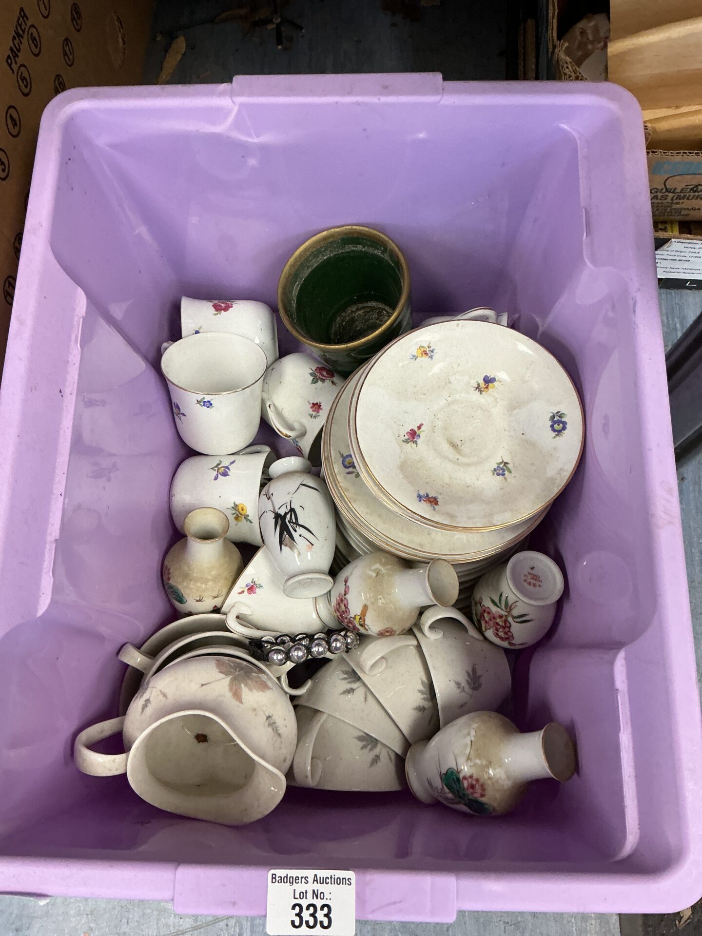 This lot comprises a collection of vintage tea cups and saucers, predominantly porcelain, featuring delicate floral patterns. The set includes a variety of designs and sizes, suggesting a possible accumulation over time. These pieces evoke a sense of classic elegance and would be a charming addition to any tea-drinking experience or collection.