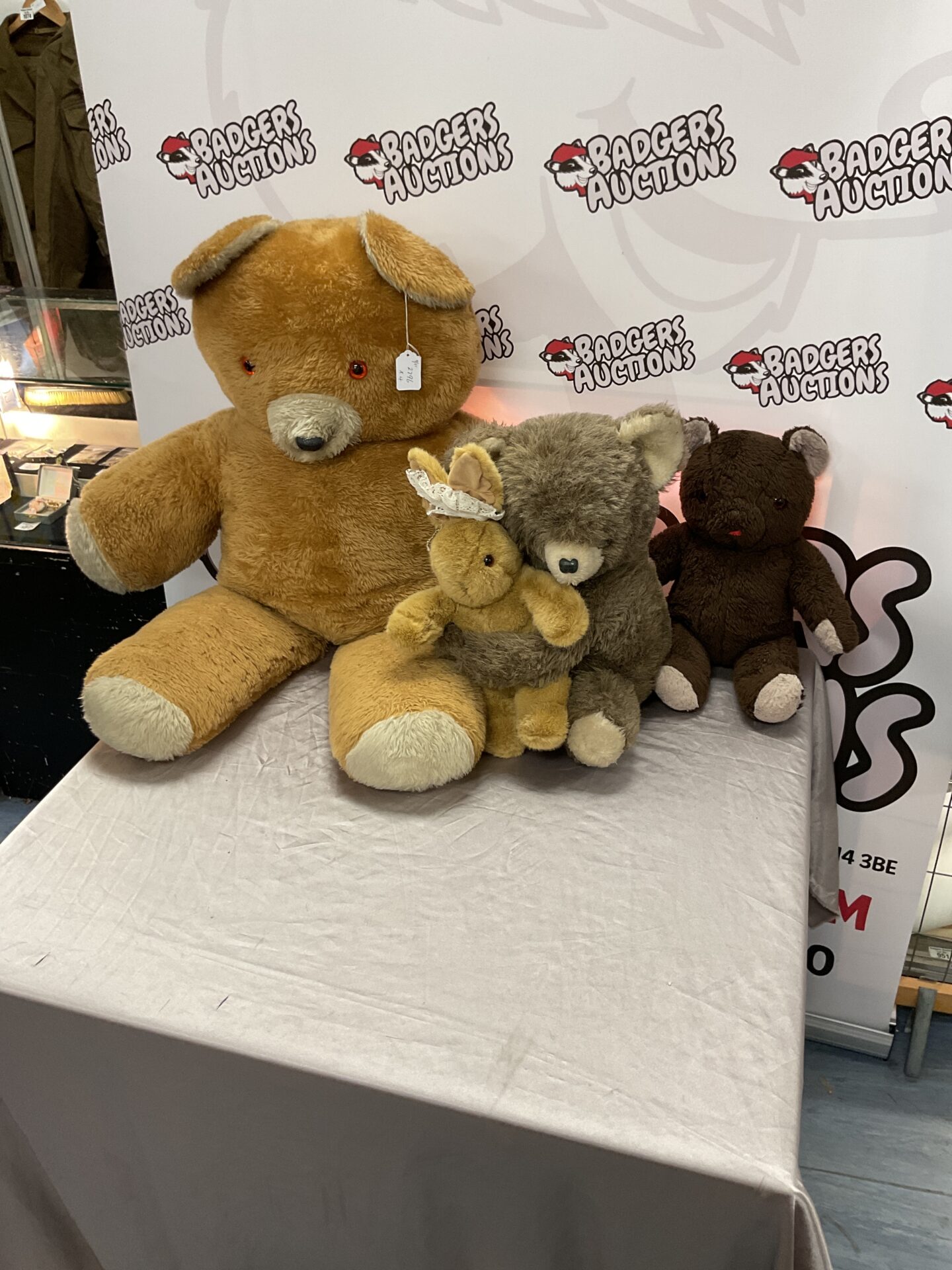 This lot comprises a selection of vintage teddy bears, each with its own unique character and charm. These bears represent a nostalgic glimpse into toy-making history, likely dating from various periods throughout the 20th century. The bears exhibit a range of sizes and materials, suggesting they were produced by different manufacturers or represent evolving styles over time.