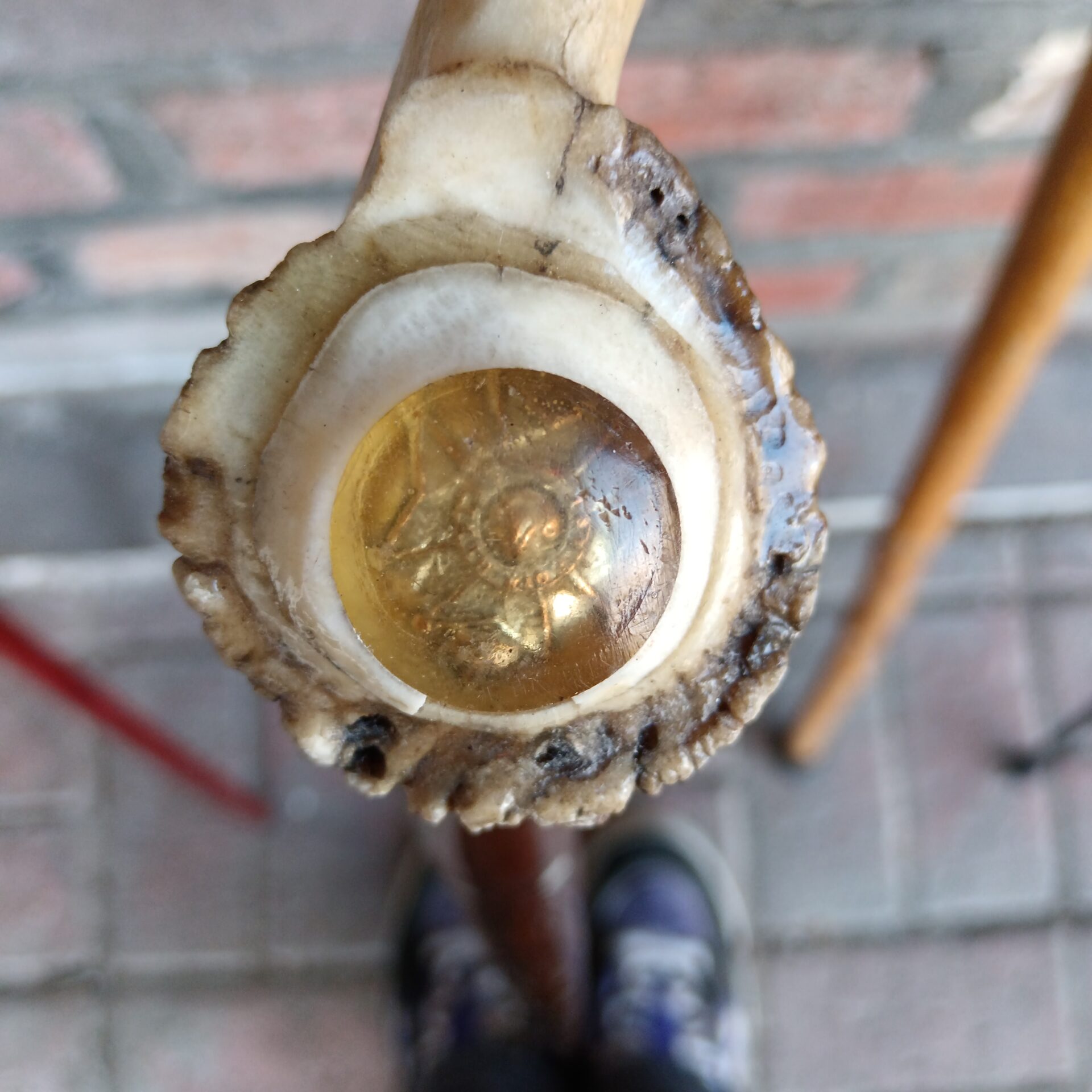 These walking sticks show signs of age and use, with some minor wear and imperfections consistent with their vintage. The resin badge on one stick is intact, though may exhibit minor clouding. These sticks would appeal to collectors of antique walking sticks, military memorabilia, or those seeking unique decorative items. Their varied styles and materials make them an interesting and visually appealing collection.