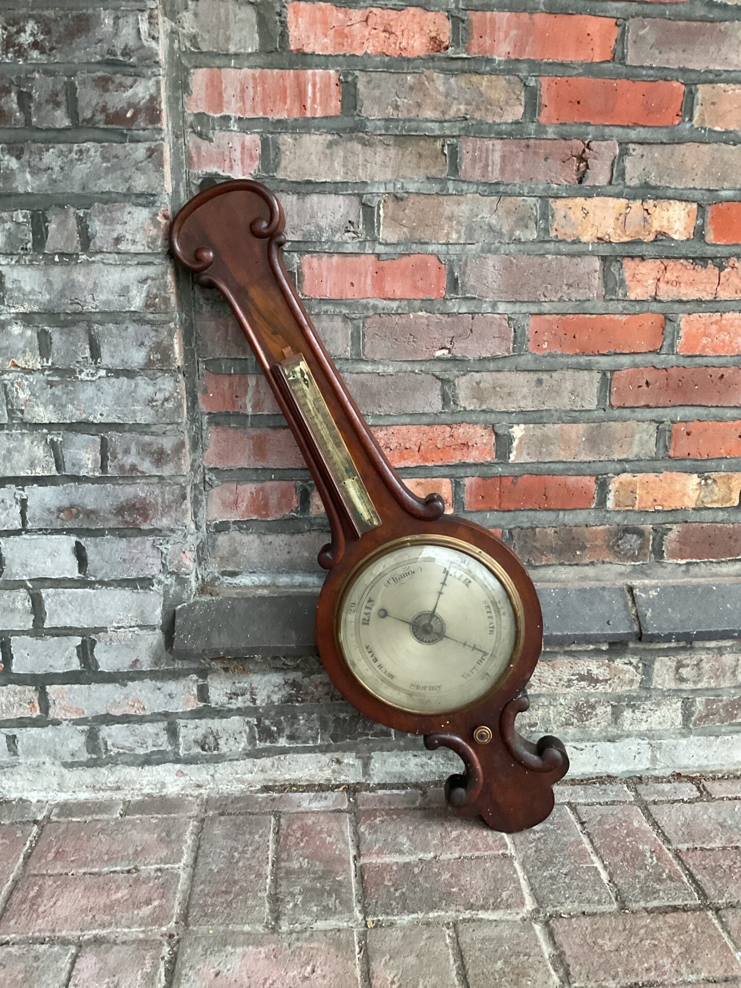 This barometer presents as a restoration project, requiring attention to its mechanism and potentially the dial glass. While the item is not currently functioning, it offers a wonderful opportunity for a collector or enthusiast to restore it to its former glory. The quality of the carving and the overall aesthetic suggest it would be a striking addition to a period home or a collection of antique scientific instruments.
