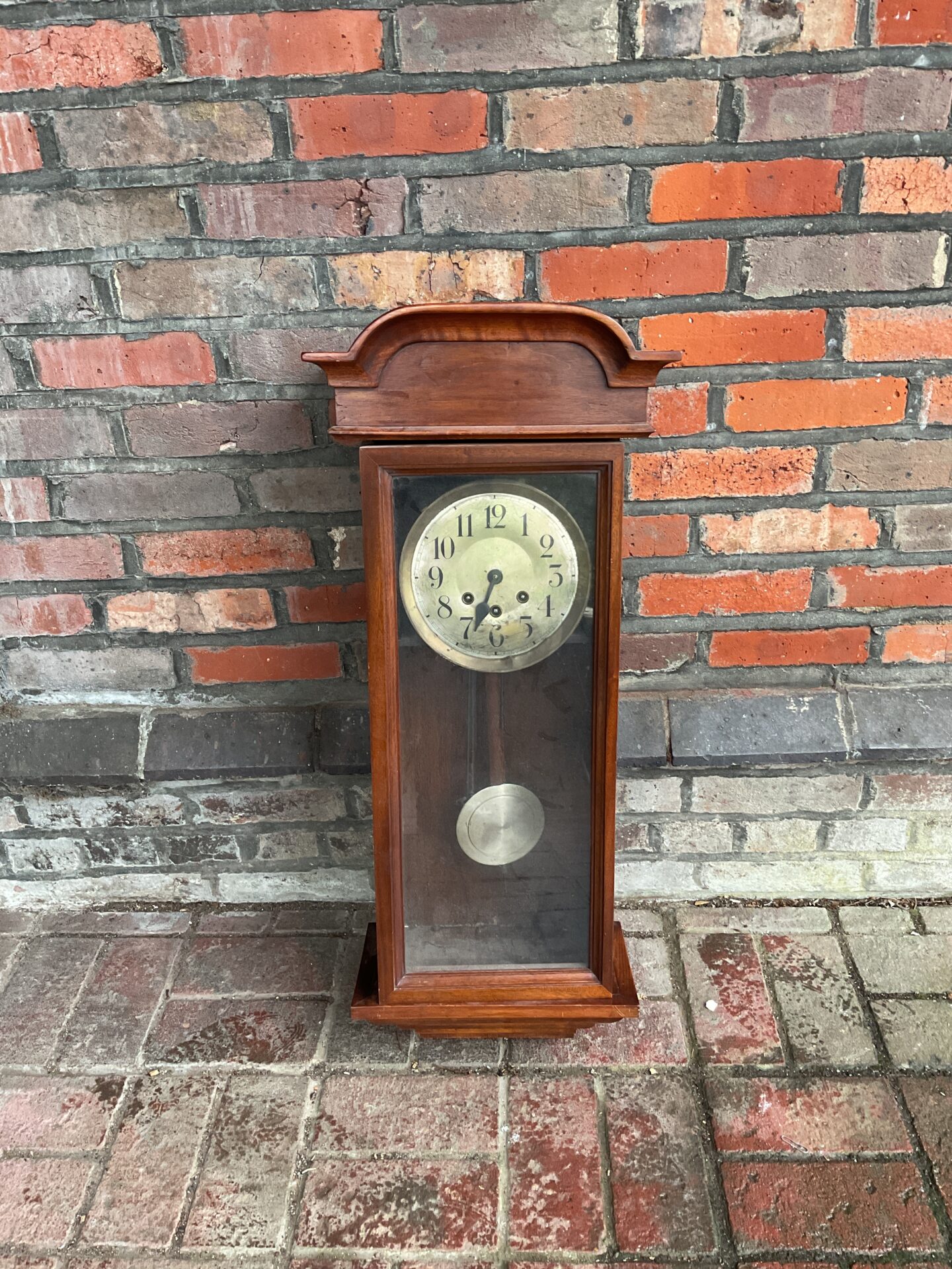 This clock presents as a vintage item with signs consistent with age and use. The clock’s mechanism is untested and its functionality is unknown. This clock may appeal to collectors of vintage timepieces or those seeking a decorative piece with historical character.