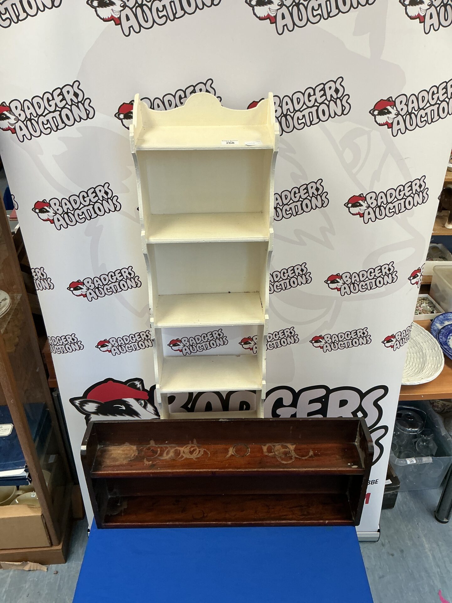 These shelves show signs of gentle wear consistent with age and use, including minor scratches and imperfections, which only enhance their vintage appeal. They remain structurally sound and ready for immediate use or restoration. Collectors and enthusiasts of vintage home decor will appreciate the authentic character and timeless style of these shelves, offering a unique opportunity to own a piece of the past.