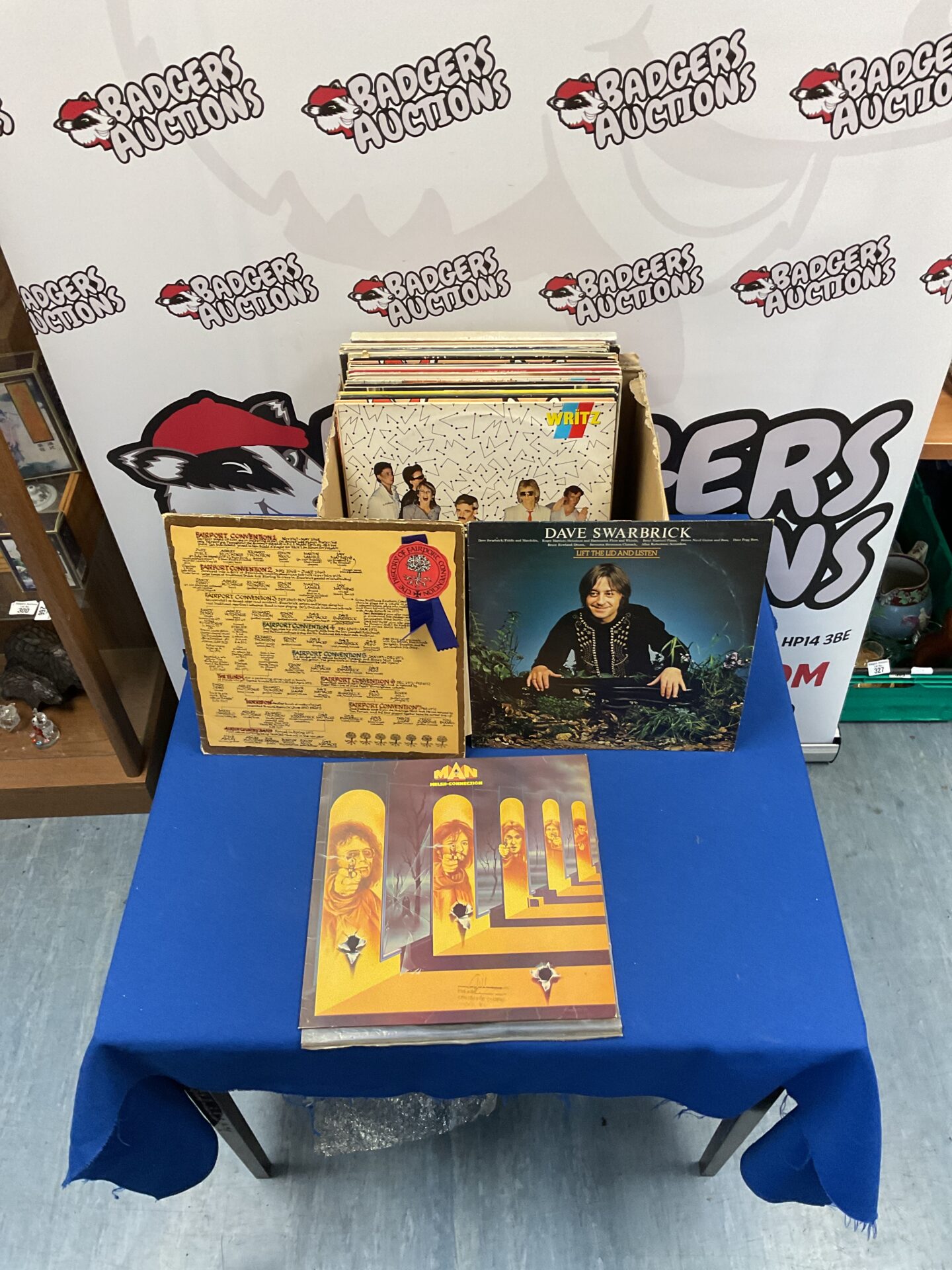 The condition of the records varies, with some showing signs of wear and use. This lot is offered as-is, with no guarantees regarding playability or completeness of original packaging. Despite any wear, these records may hold appeal for collectors seeking vintage or rare pressings, or for those interested in the aesthetic of vinyl collecting.