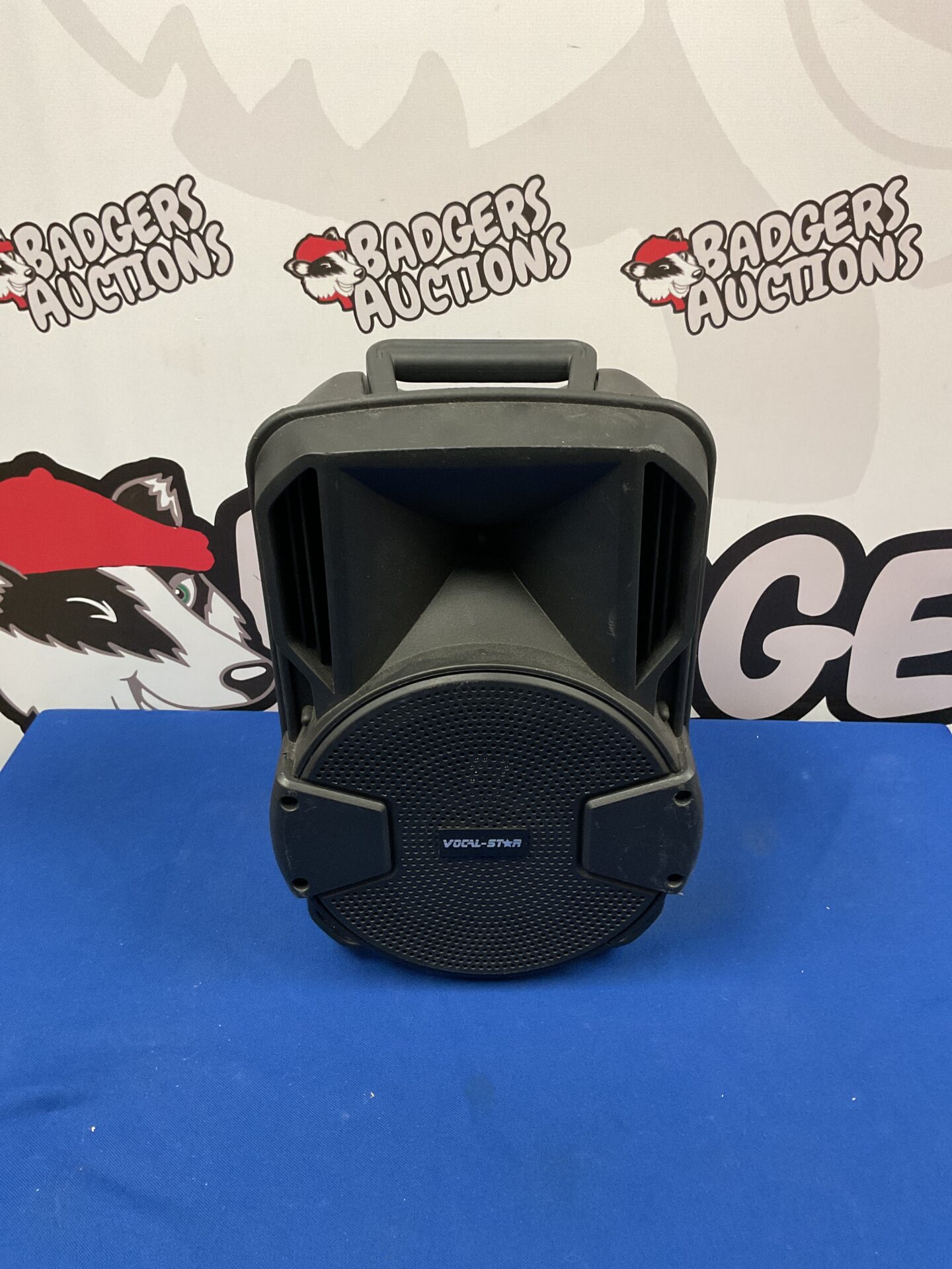 This Vocal Star VS-T100 microphone speaker is presented for consideration by a collector or user. Its condition should be assessed by the buyer through the provided images. This type of portable PA system can be of interest to collectors of vintage audio equipment or those seeking a unique and functional device for events or performances.