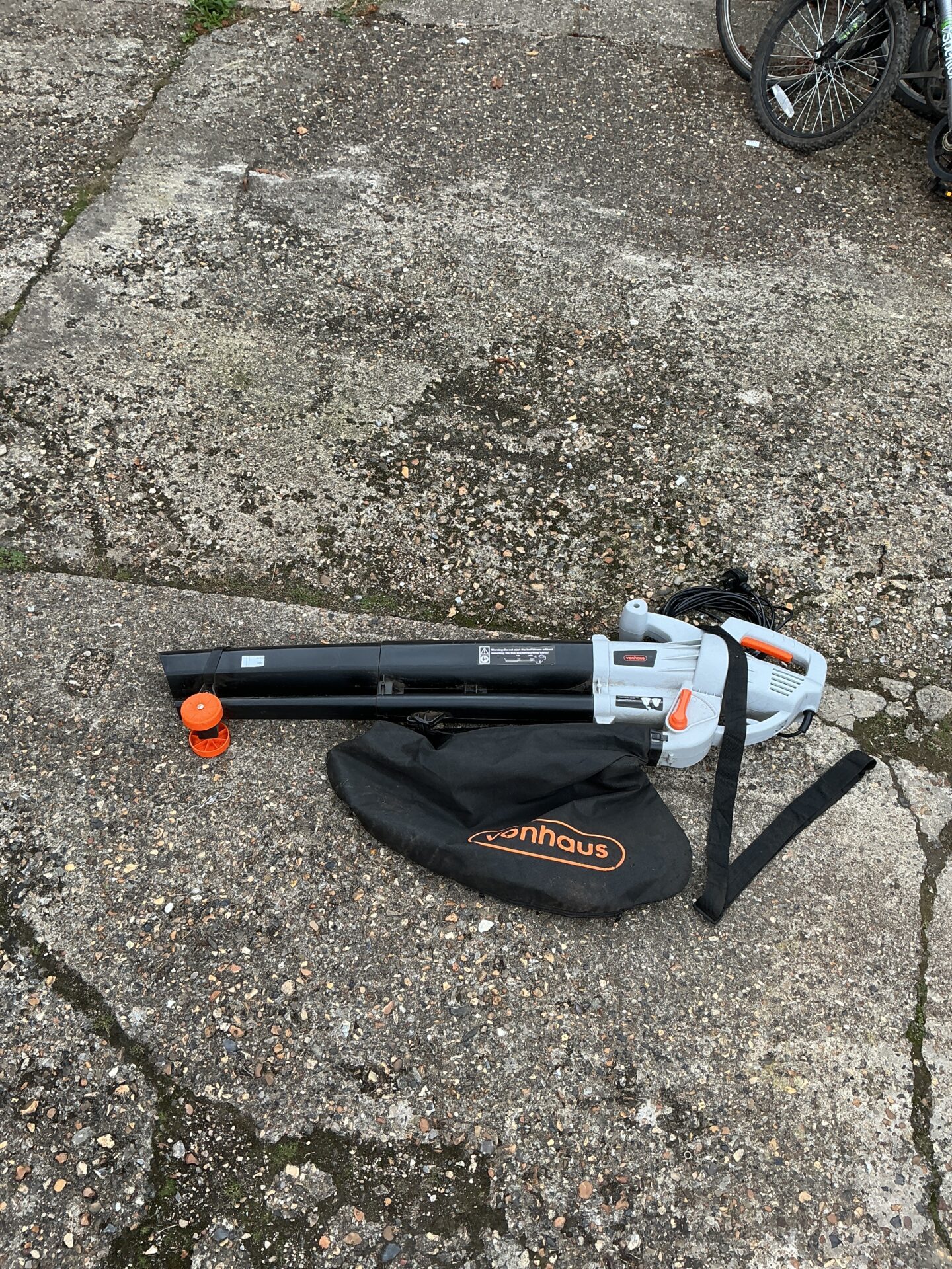 This Vonhaus garden vac/blower appears to be in good used condition, showing signs of previous use but remaining fully functional. It’s a practical tool for anyone needing to keep their garden tidy, and its electric operation makes it an environmentally friendly choice. This model is a popular choice for home gardeners and would be a welcome addition to a collection of garden tools.