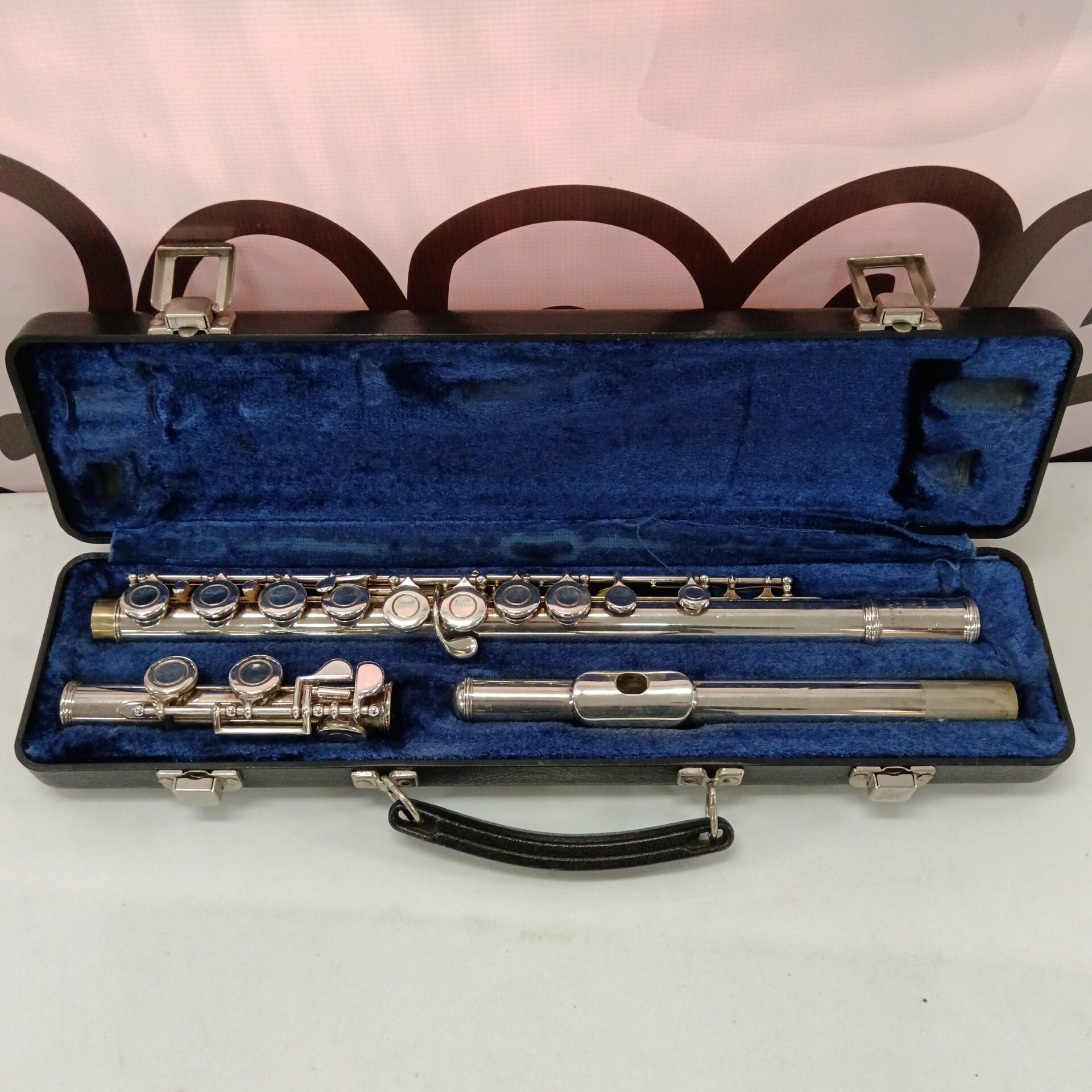 This is a W T Armstrong flute, a popular choice for students and beginning musicians. The flute features a standard key system and is constructed from silver-plated metal. It comes presented in its original case, offering protection and portability.