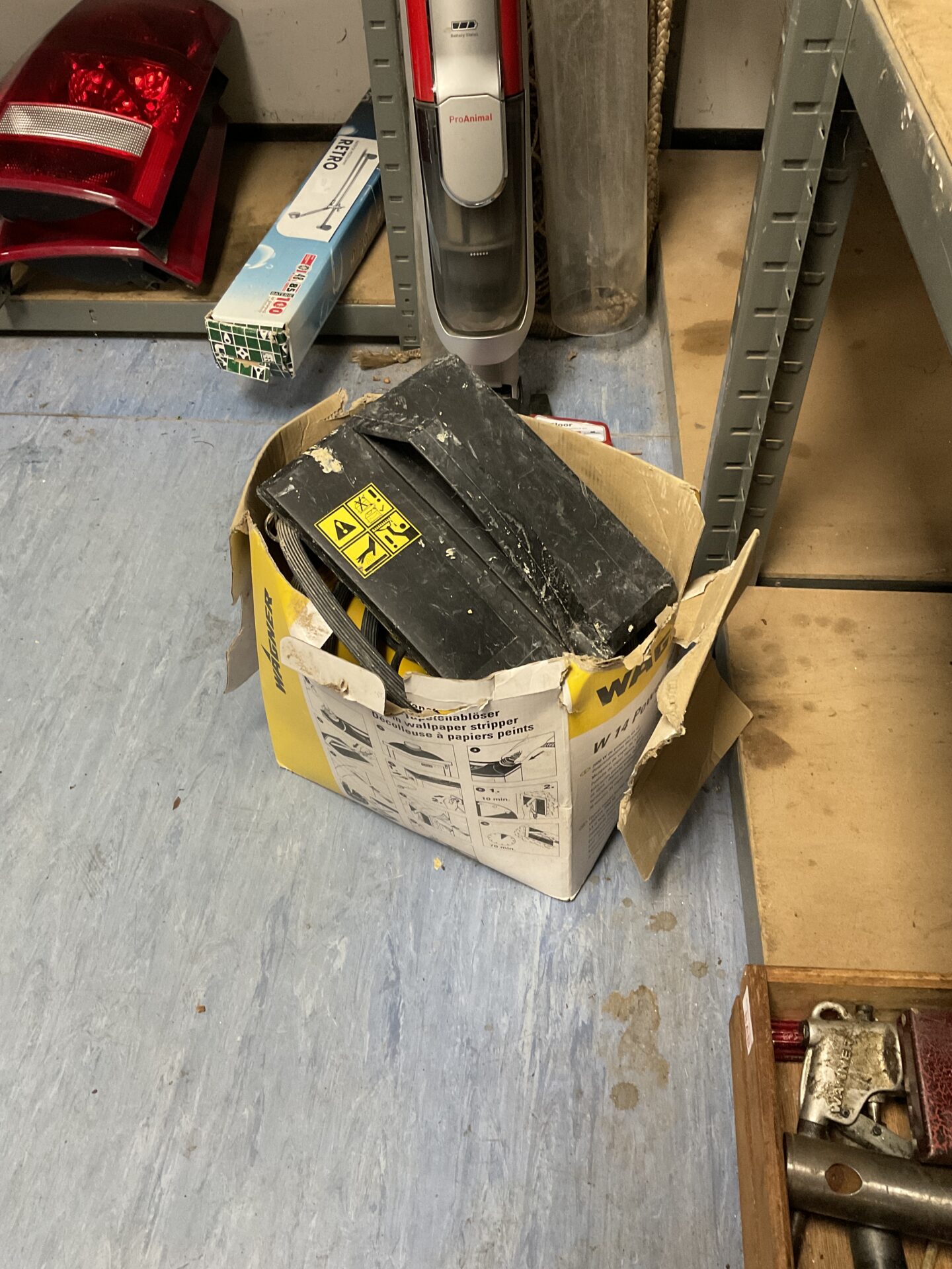 This is a Wagner W14 power steamer, designed for removing wallpaper. The unit appears to be a classic example of early steam-based wallpaper removal technology. It features a robust construction and is intended to be used with a water reservoir to generate steam for loosening wallpaper paste.