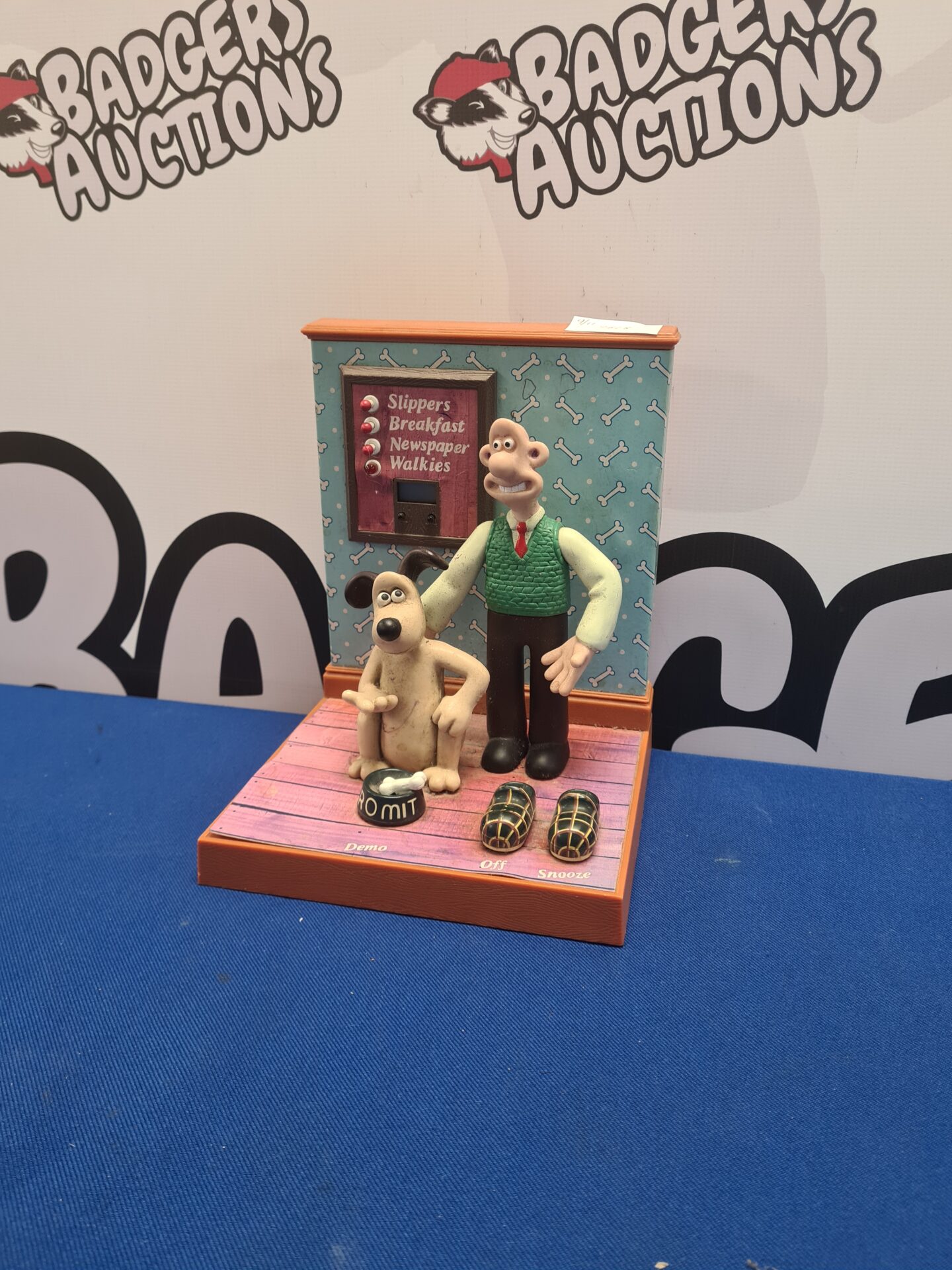 This is a Wesco Wallace And Gromit talking alarm clock, a nostalgic piece of character merchandise from the 1990s. The clock features Wallace from the beloved animated series, and is designed to speak phrases when the alarm is activated. It’s a fun and quirky addition to any collection, and a testament to the enduring popularity of Wallace and Gromit.