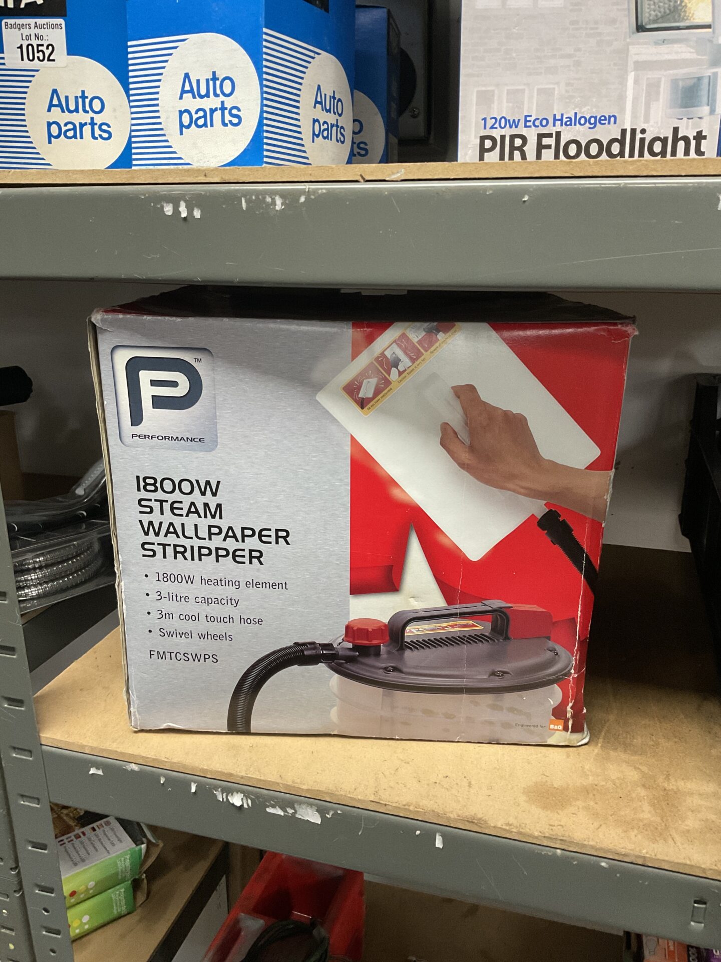 This is a Performance Pro 1800W steam wallpaper stripper, designed for efficient removal of old wallpaper. It features a 3-litre water capacity, a 3-meter cool-touch hose, and swivel wheels for easy manoeuvrability. The unit is designed to generate steam to loosen wallpaper adhesive, making peeling easier and faster than traditional methods.