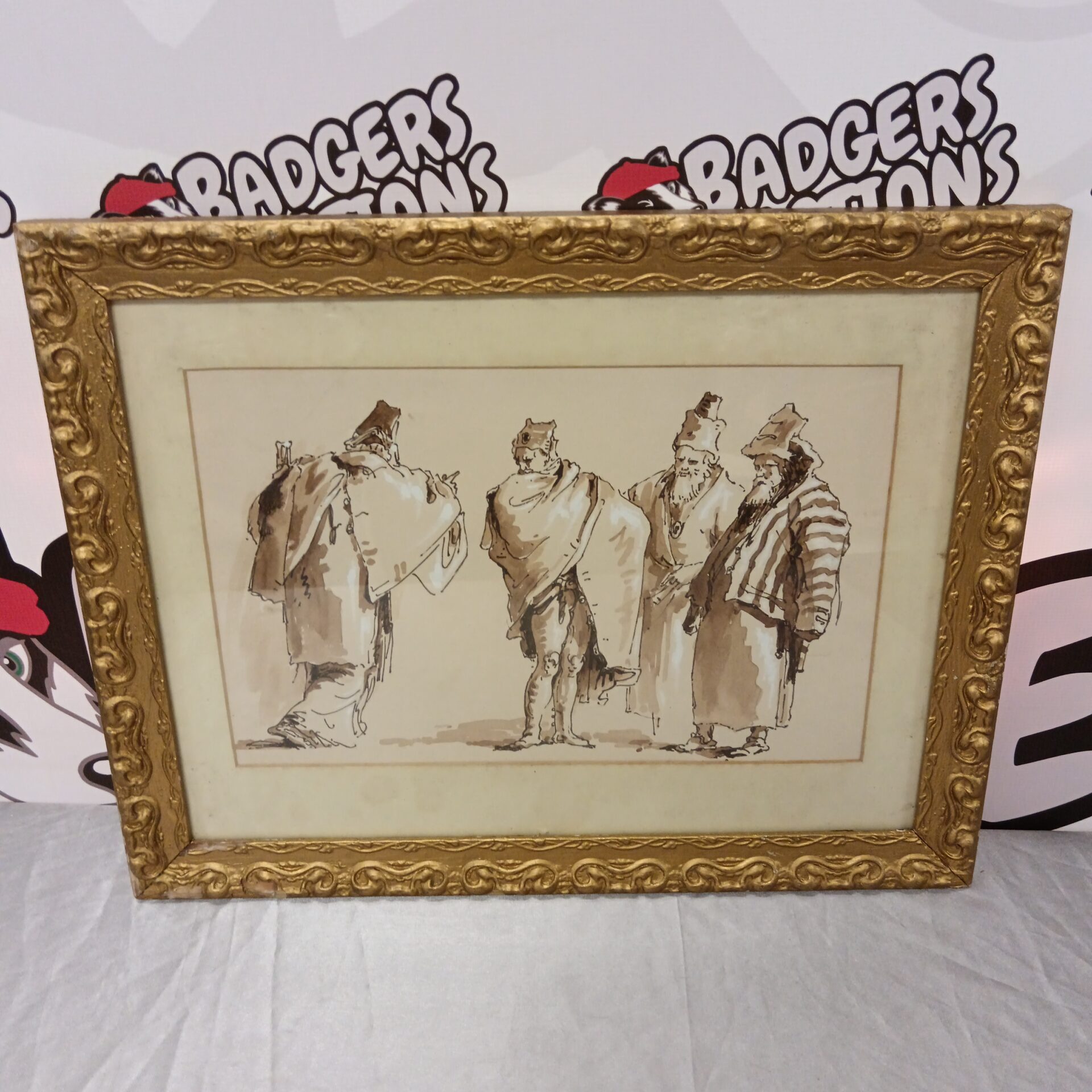 825 Watercolour Classical Portrait Study Of Men In A Discussion