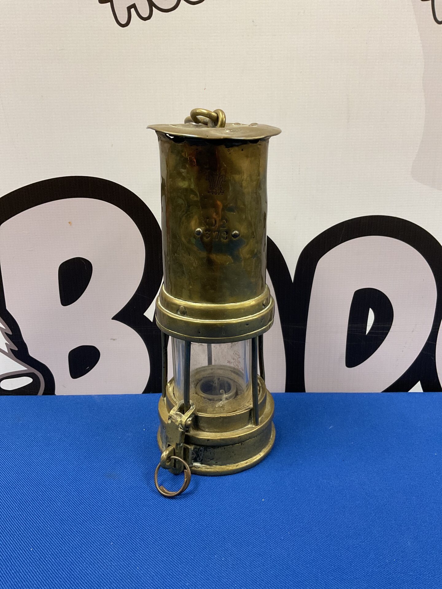 This is an antique Welsh mining lamp, manufactured by Thomas & Williams. The lamp features a brass body, designed for use in the challenging conditions of Welsh coal mines. These lamps were essential for providing illumination underground, allowing miners to work safely and efficiently. The design incorporates features typical of the period, including a secure locking mechanism and a robust construction to withstand the rigours of mining.