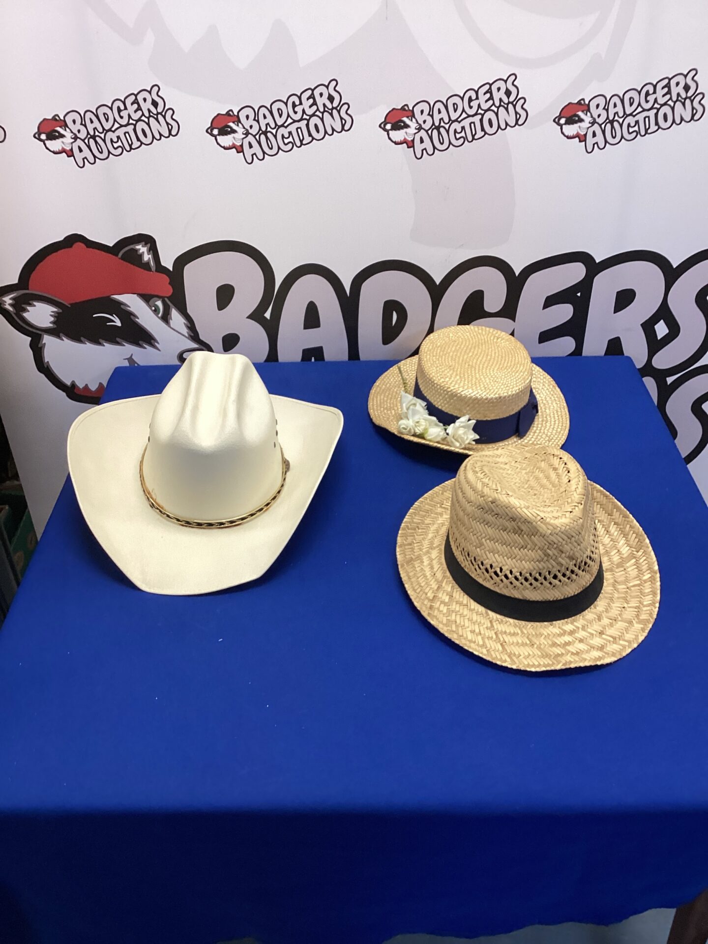 These hats show signs of age and wear, adding to their character and authenticity. While the wicker remains largely intact, there may be minor imperfections or slight wear consistent with their age. These hats would appeal to collectors of vintage fashion, hat enthusiasts, or those seeking unique decorative pieces with a touch of nautical or western charm.