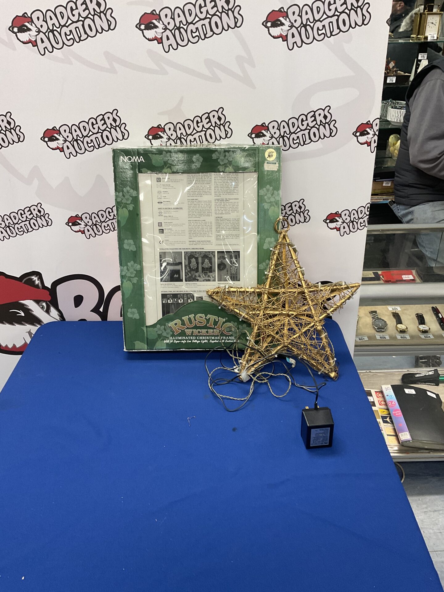 This rustic wicker Christmas star offers a warm, festive glow for your holiday décor. Constructed from woven wicker with integrated lights, it adds a charming, natural aesthetic to any space. A unique piece for collectors or those seeking a handcrafted touch for their Christmas displays.