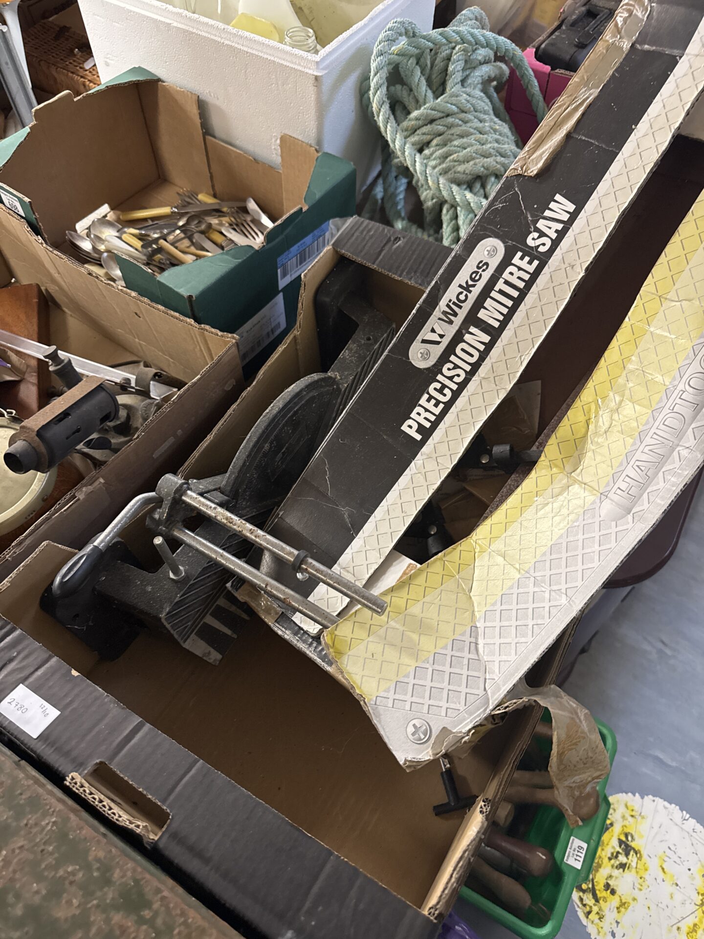 This is a Wickes mitre saw, a hand tool designed for making accurate angled cuts in wood. It features a sturdy frame and a guide for the saw blade, ensuring clean and precise cuts for various woodworking and DIY projects. The mitre box allows for adjustments to create different angles, making it versatile for a range of applications.