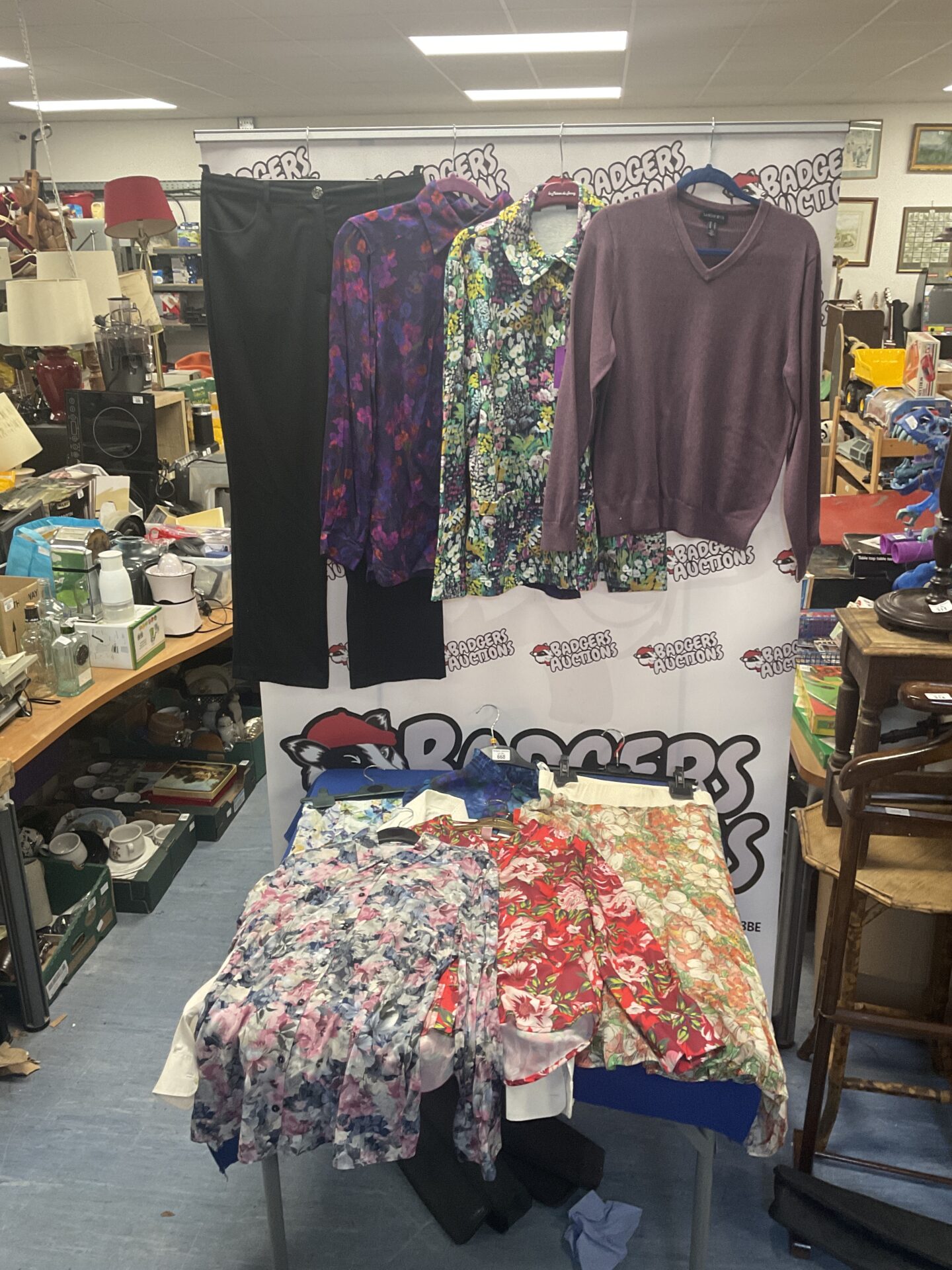 This lot features a selection of women’s clothing in size 14, including patterned dresses and tops. Pre-owned garments offer a variety of styles and colours. Ideal for affordable fashion, vintage lovers, or upcycling projects.
