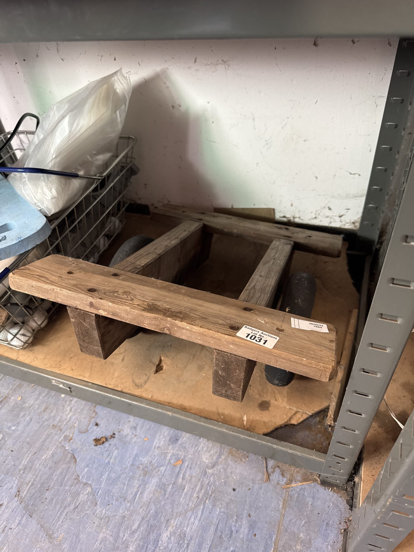 The dolly shows signs of wear consistent with age and use, including some surface scratches and weathering. It appears structurally sound, with no major cracks or damage. This piece would appeal to collectors of vintage tools, industrial ephemera, or those seeking a unique and functional addition to a workshop or studio. Its rustic charm and solid construction make it a desirable item for restoration or continued use.