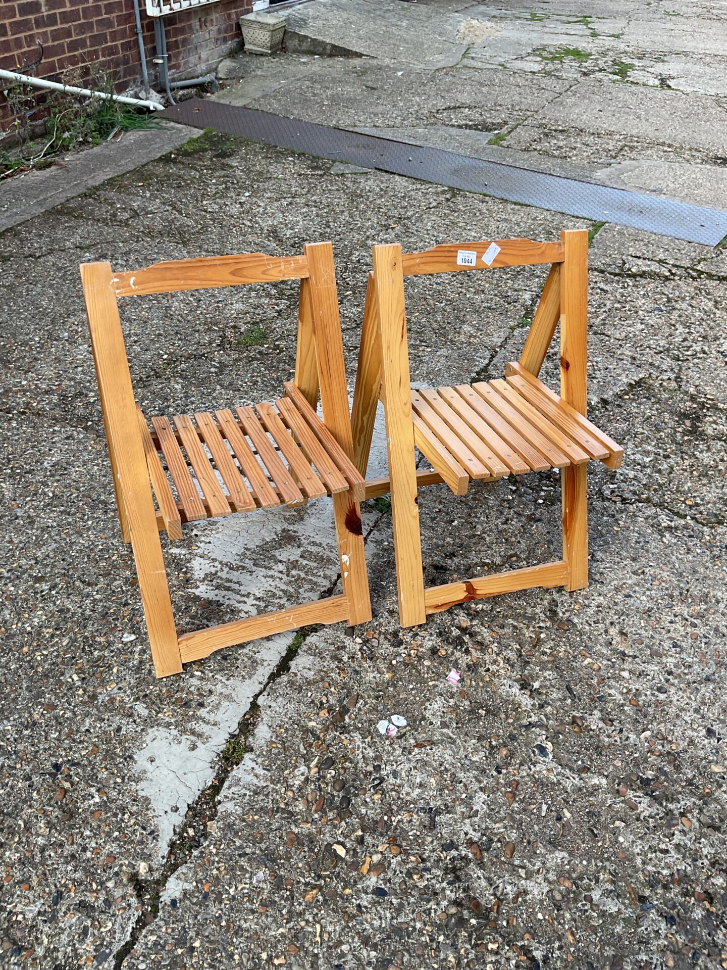 These charming wooden folding chairs are ideal for children or smaller adults. Constructed from wood, they offer a lightweight and portable seating solution. Their simple design and folding functionality make them perfect for temporary seating arrangements, picnics, or storage in limited spaces.