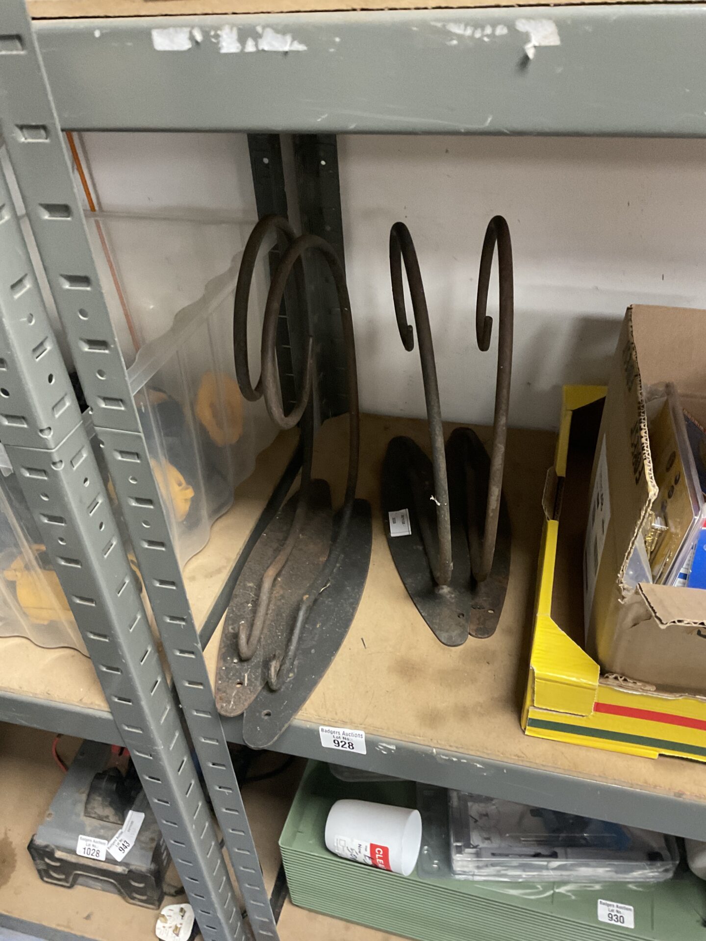 These brackets show signs of age and prior use, with some surface rust and wear consistent with their age. Despite this, the brackets remain structurally sound and retain their original character. Collectors of vintage garden decor or ironwork will appreciate these brackets as charming additions to a period garden or as decorative elements within a home.