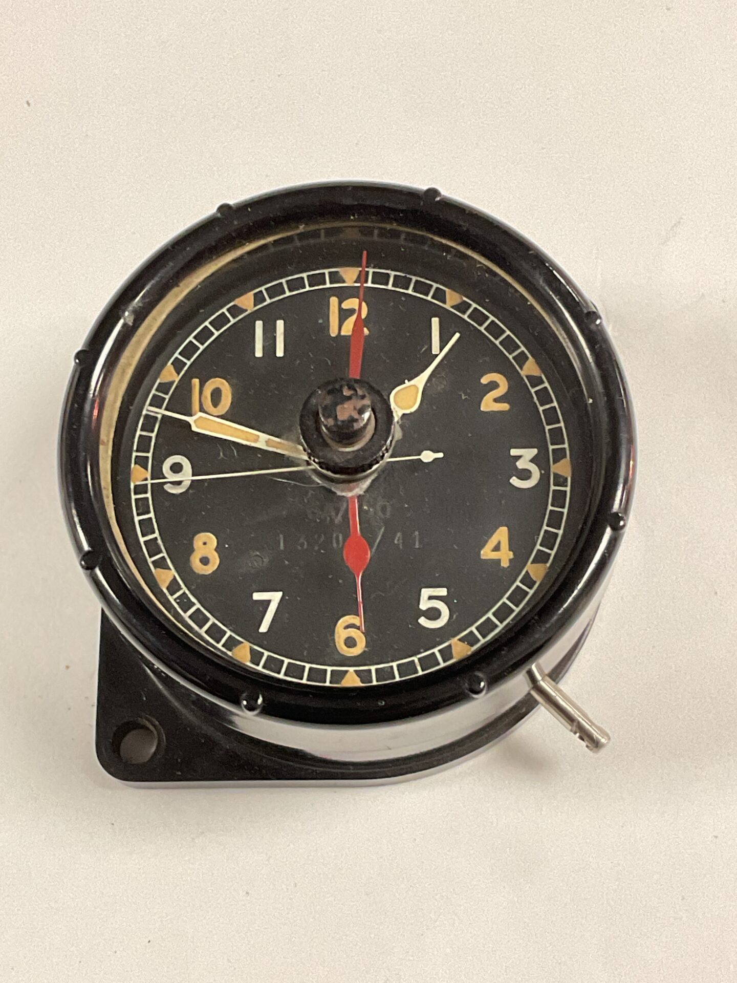 The clock presents with signs consistent with age and use. It is offered in unrestored condition, retaining its original features. This clock would be of interest to collectors of military aviation memorabilia, vintage timepieces, or those interested in the history of WW2 aircraft instrumentation.
