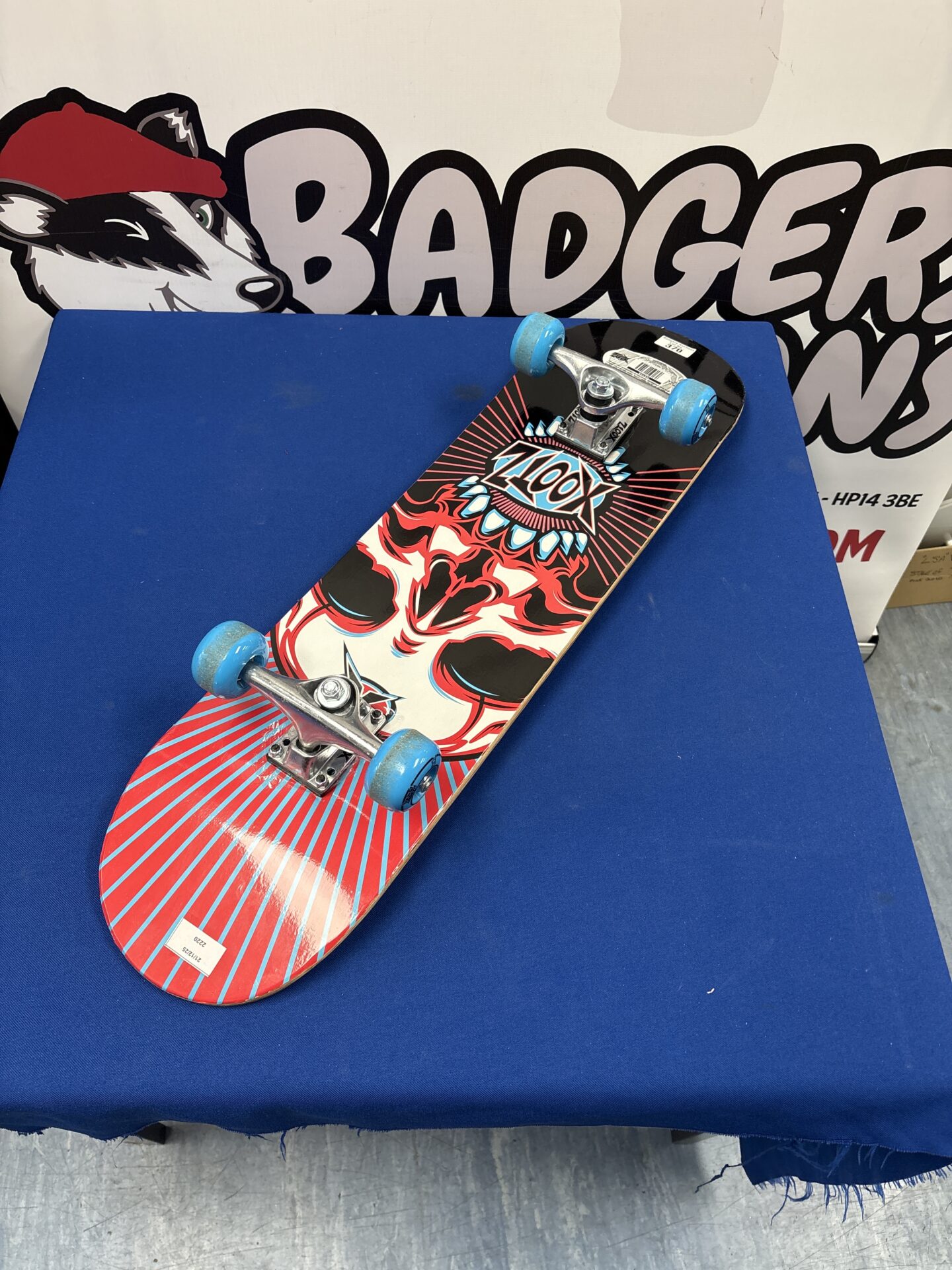 This is a Xootz skateboard, designed for recreational use. The board features a colourful graphic design and is constructed with a wooden deck and plastic trucks and wheels. It’s intended as an entry-level skateboard for beginners, offering a fun way to learn the basics of skateboarding. The model number is HP136.