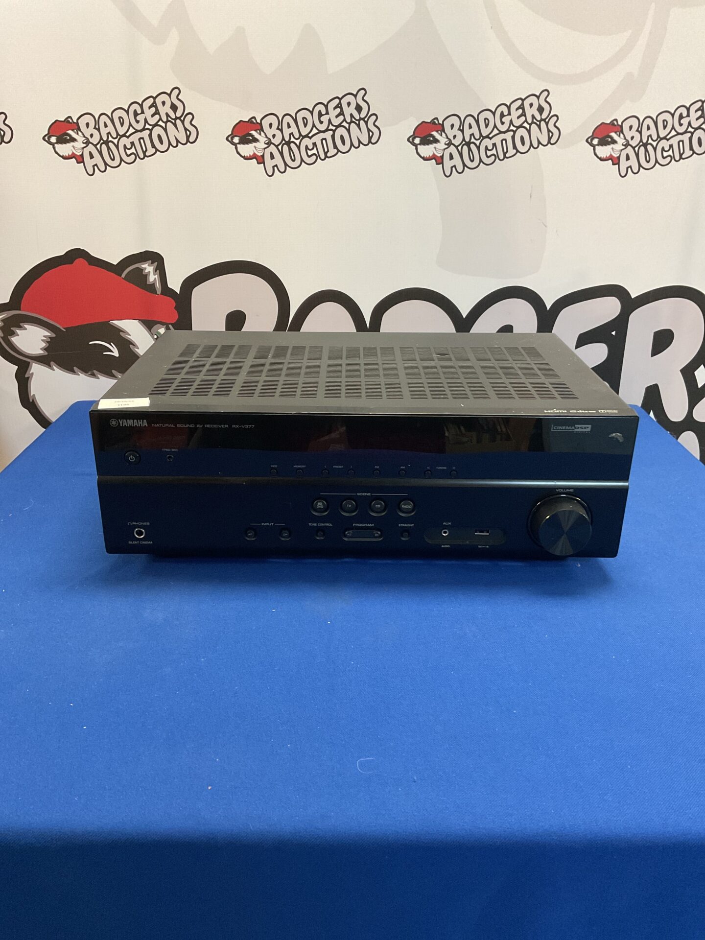 This Yamaha RX-V377 receiver appears to be in good condition, ready for use or as a collectible piece for audio enthusiasts. It’s a popular model known for its reliability and performance, making it a desirable item for those building or upgrading their home theater. Its well-maintained appearance adds to its appeal for both functional use and potential display.