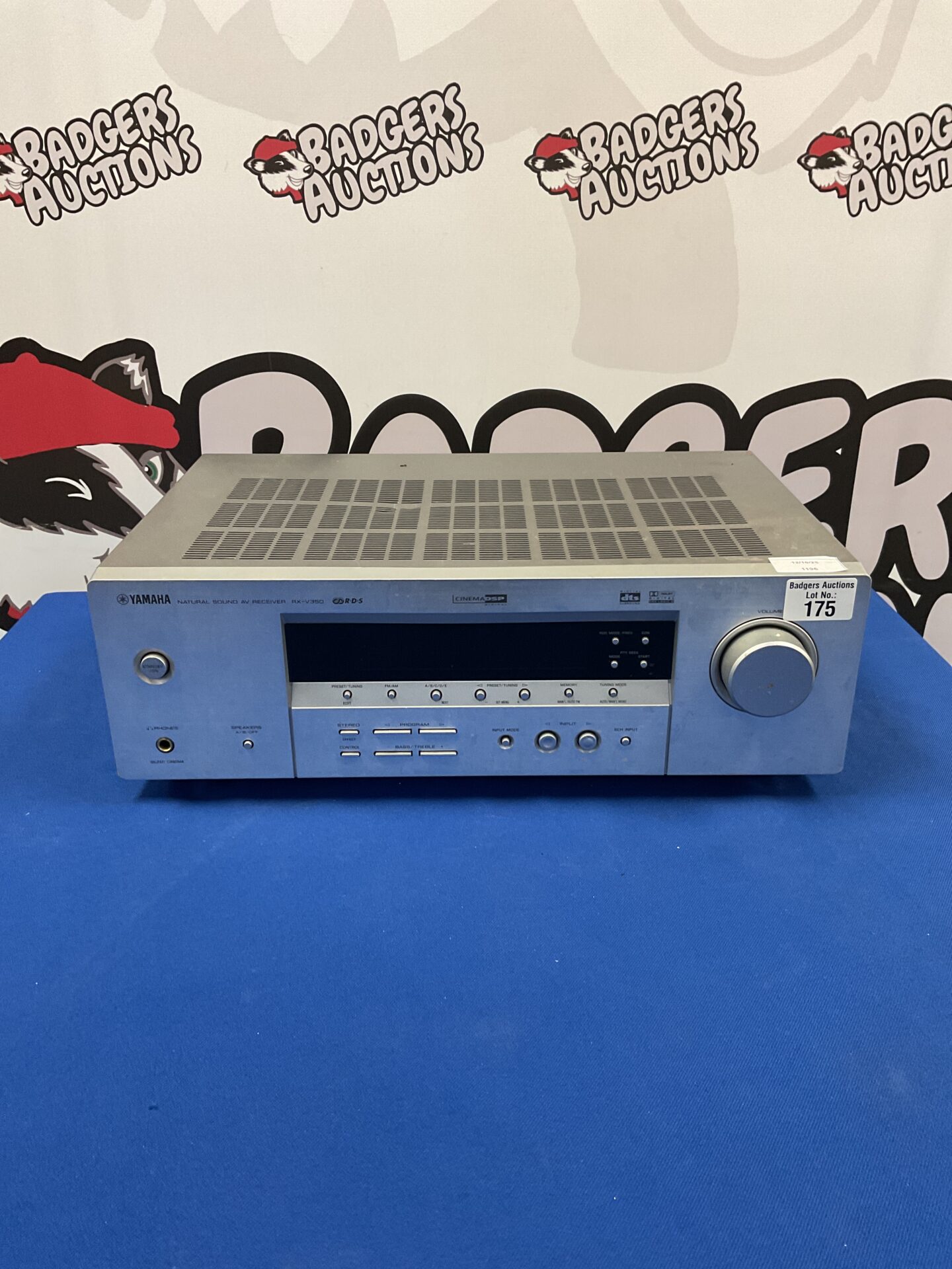 This Yamaha RX-V350 receiver appears to be in good condition, showing signs of careful use. It is a desirable model for audio enthusiasts and collectors alike, offering a blend of vintage aesthetics and reliable performance. This receiver is a great option for those looking to enhance their home theater experience with a classic Yamaha sound.