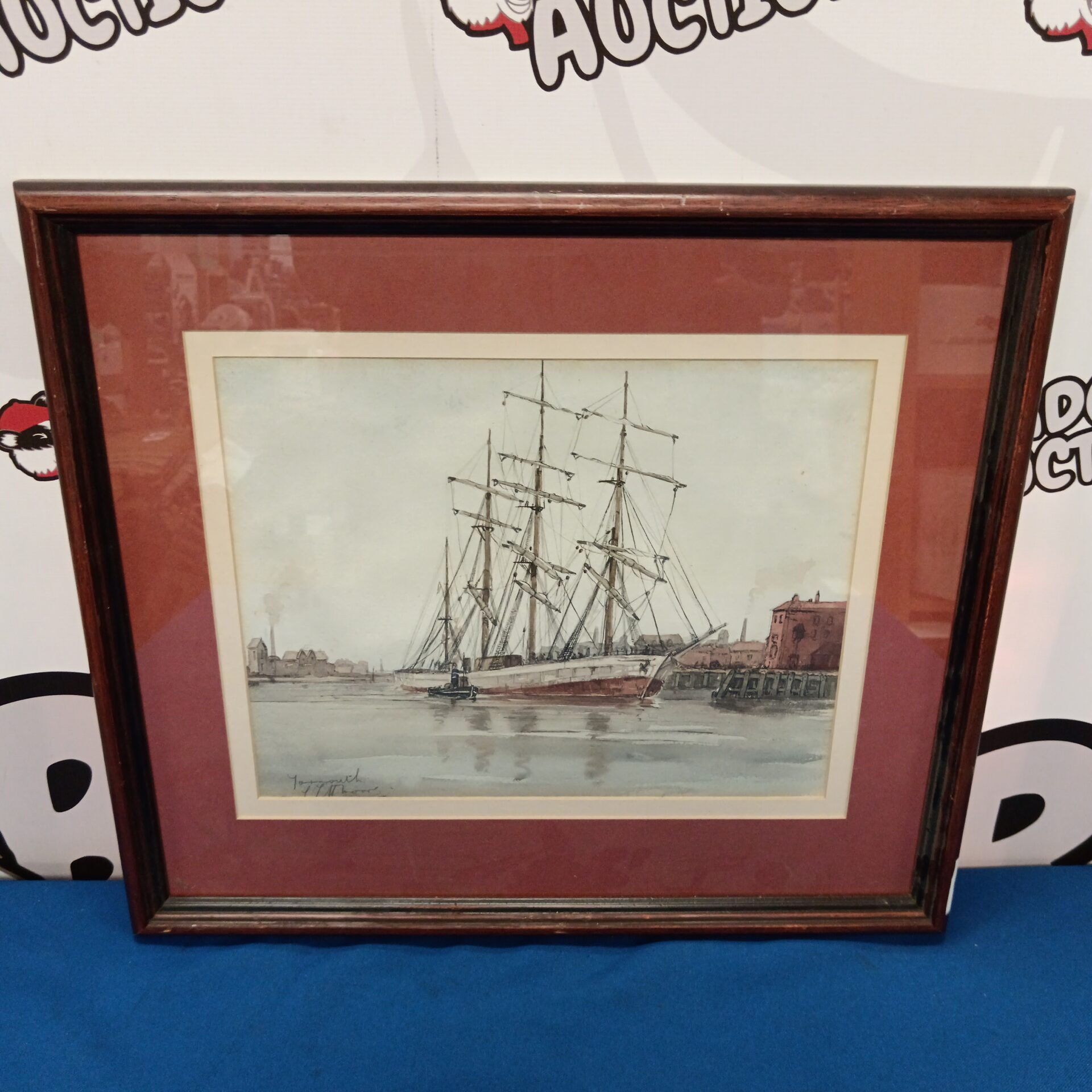 The painting appears to be in good condition for its age, with expected signs of wear consistent with a vintage watercolour. There may be some minor foxing or discolouration to the paper, which is typical for works of this period. This piece would appeal to collectors of maritime art, nautical history enthusiasts, or those seeking a charming coastal scene to add character to their home.