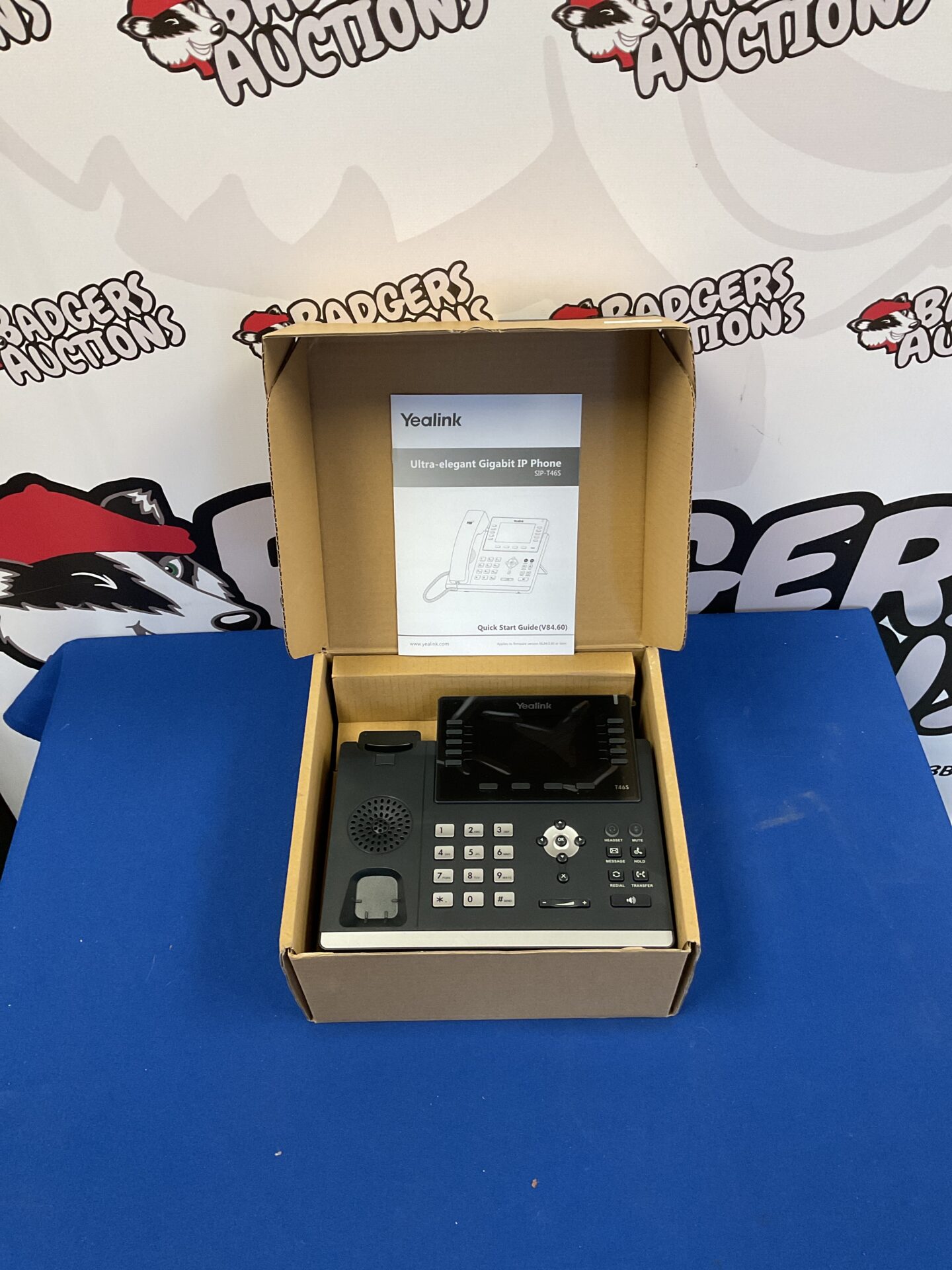 This Yealink SIP-T46S Gigabit IP phone is a sleek and modern communication solution for businesses. It offers high-definition audio and is designed for use with VoIP systems. Presented in its original packaging, this phone is ideal for collectors or those looking to upgrade their office communication setup.